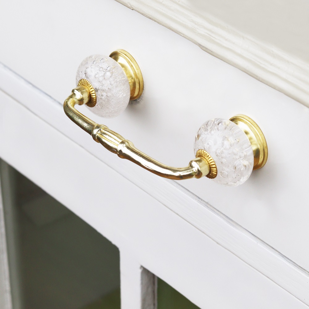Featuring unique bubble glass detailing, the Clear Bubble Glass Bridge Handle transcends mere hardware to become a piece of art. The glass's transparency, paired with its bubble-like texture, creates a playful yet refined appearance. This handle is versatile enough to enhance a variety of interior styles, from contemporary and minimalist to classic or eclectic.