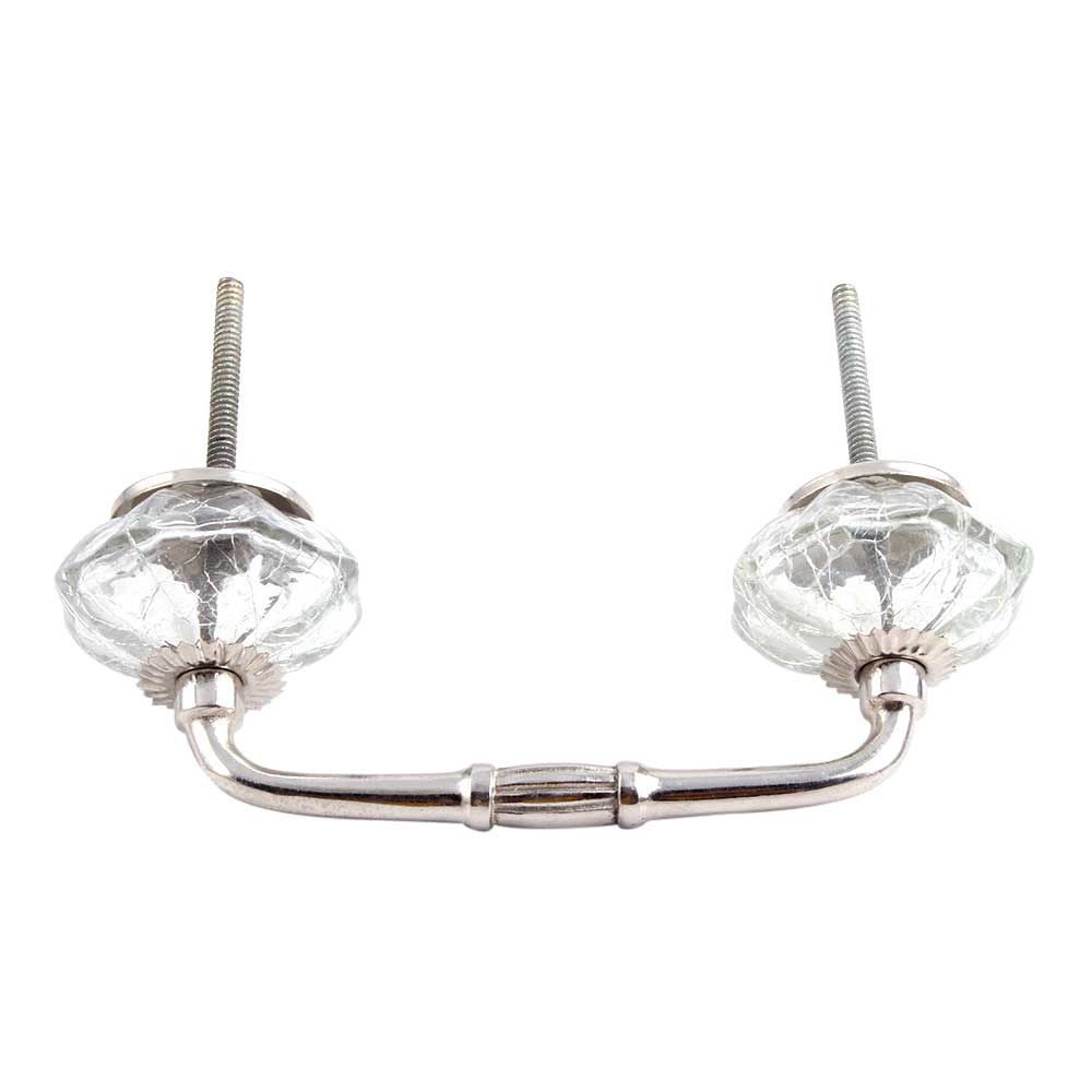 Clear Crackle Glass Bridge Handle. Ideal for Drawer, Dresser, Cabinet, Wardrobe, Cupboard and Almirah etc.