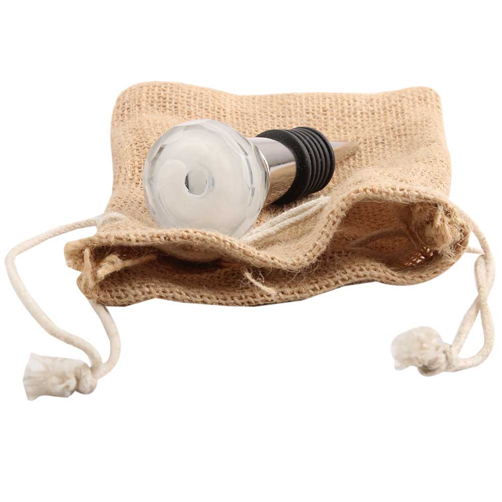 Clear Diamond Glass Wine Stopper.zinc alloy wine bottle stopper with attractive Jute Bag Packaging.