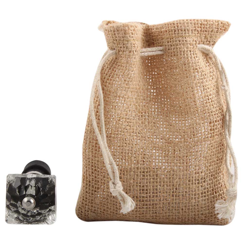 Clear Glass Square Cut Wine Stopper.zinc alloy wine bottle stopper with attractive Jute Bag Packaging.