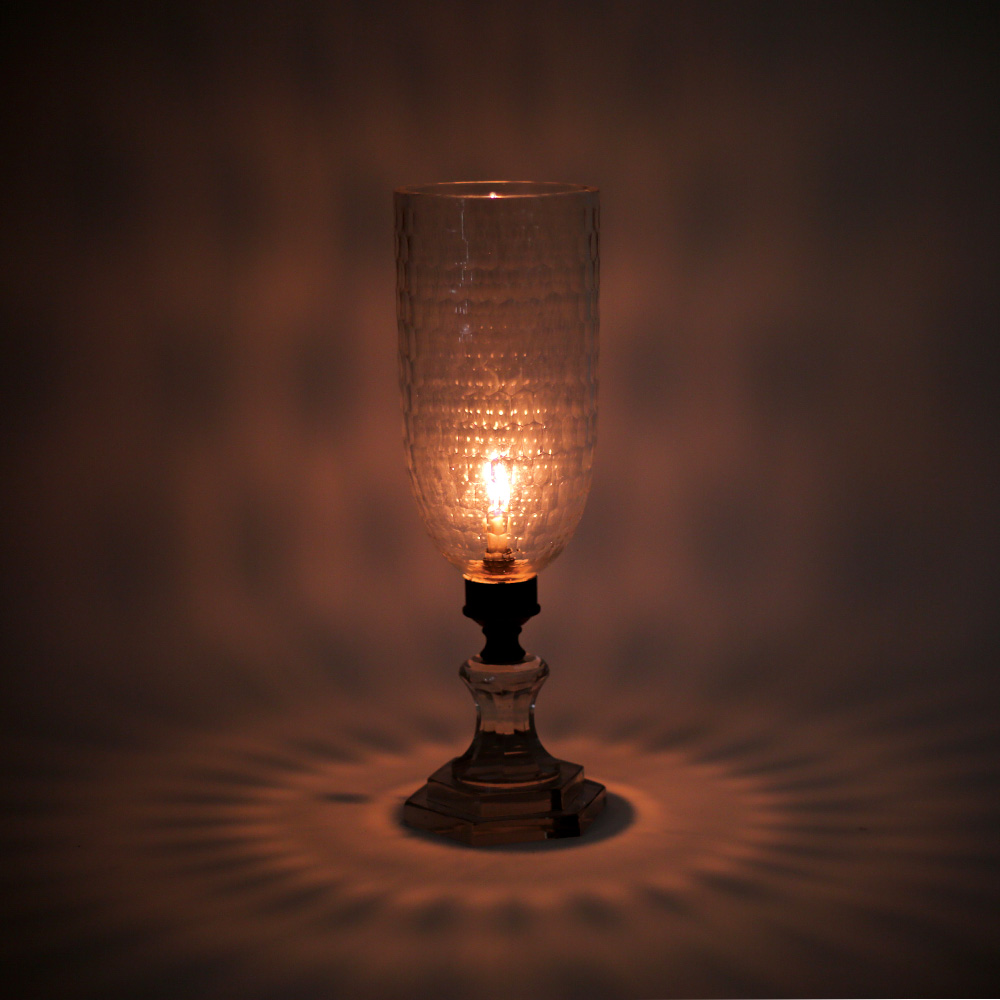 Clear Glass Table Lamp. The lamp is unique and allows a great lighting option for any room.