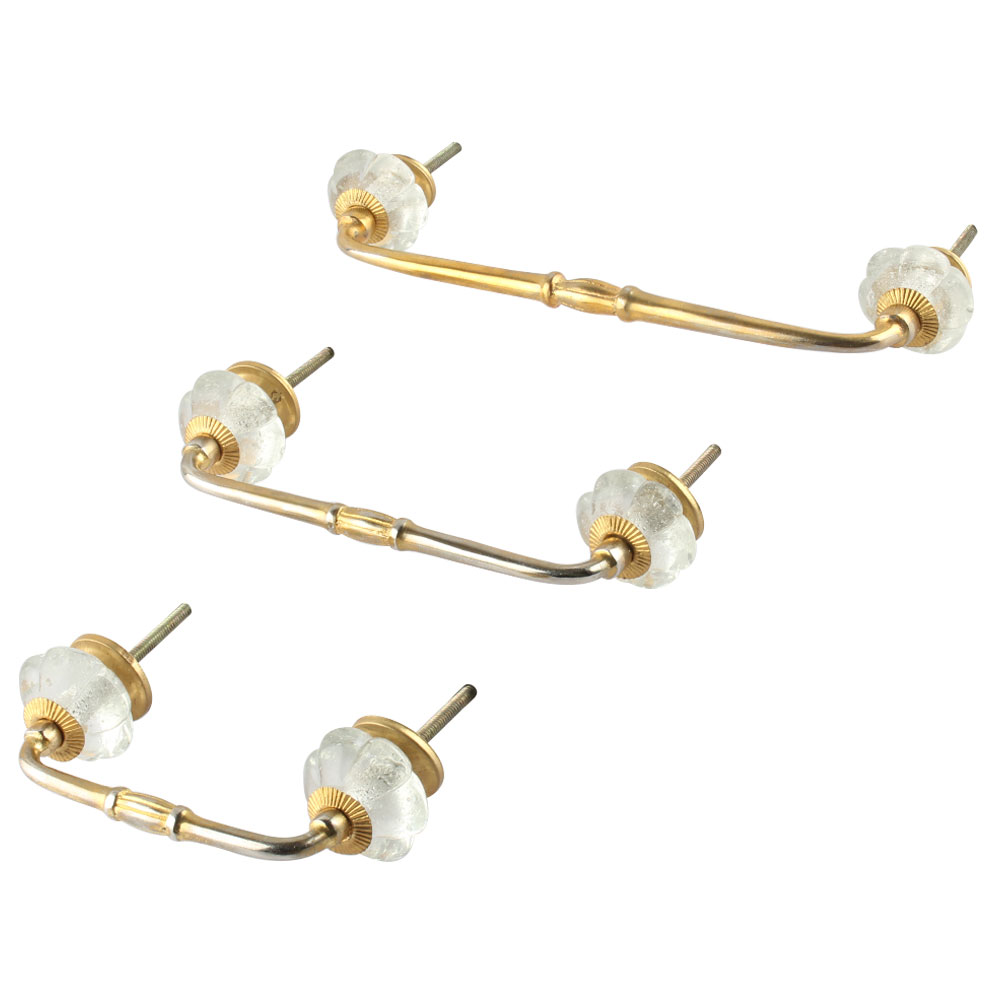 Clear Melon Glass Bridge Handle. Ideal for Drawer, Dresser, Cabinet, Wardrobe, Cupboard and Almirah.