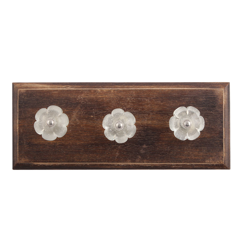 Clear Melon Glass Wooden Hook. A Perfect Complement to the Soft Tone of the Wood are these White Traditional Hat & Coat Hook Made of Genuine Porcelain and Brass. It can be use to Hang Jewellery, Leashes, Towels, Scarves, Light Weight Sweaters, Caps Etc.