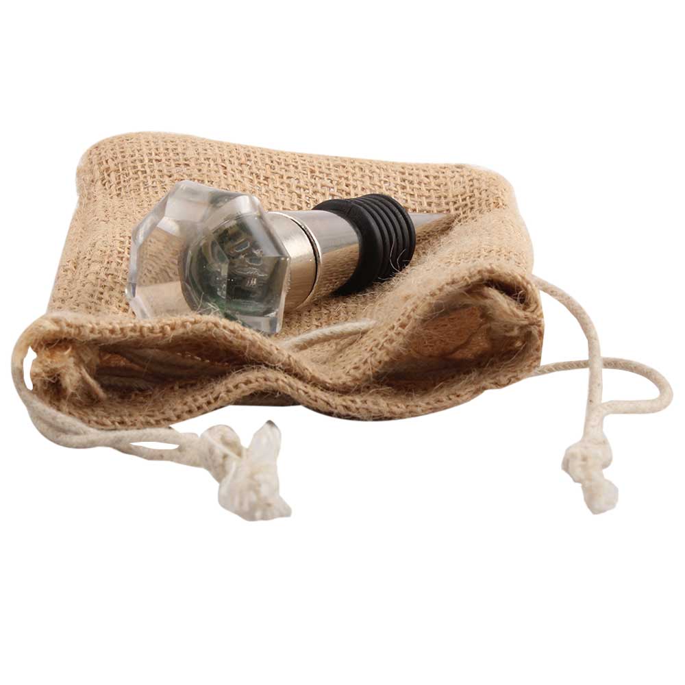 Clear Octagon Shape Glass Wine Stopper.zinc alloy wine bottle stopper with attractive Jute Bag Packaging.