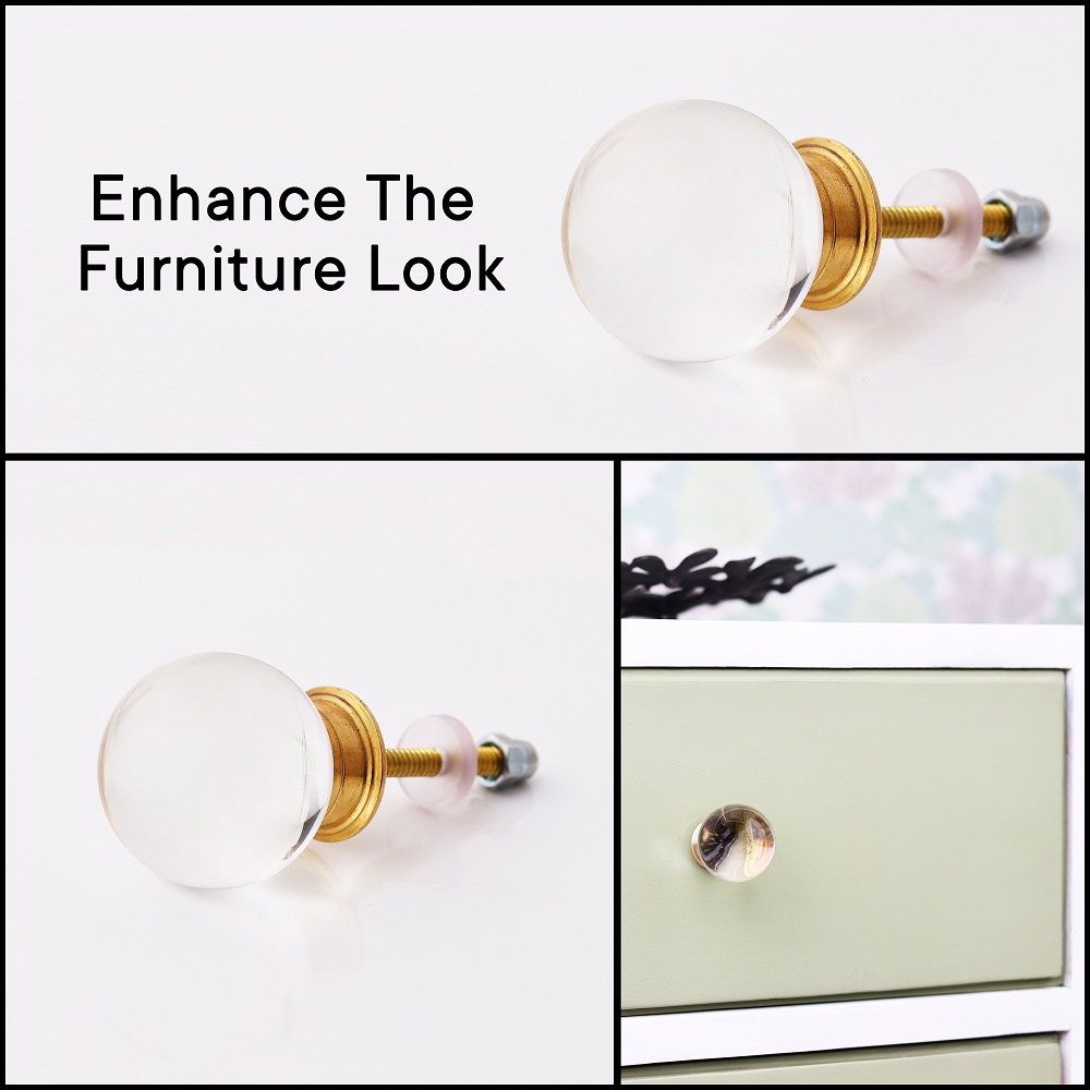 Installing the Clear Round Big Glass Drawer Knob is simple. The knob comes with all the required screws and fittings, ensuring a smooth and quick installation process.