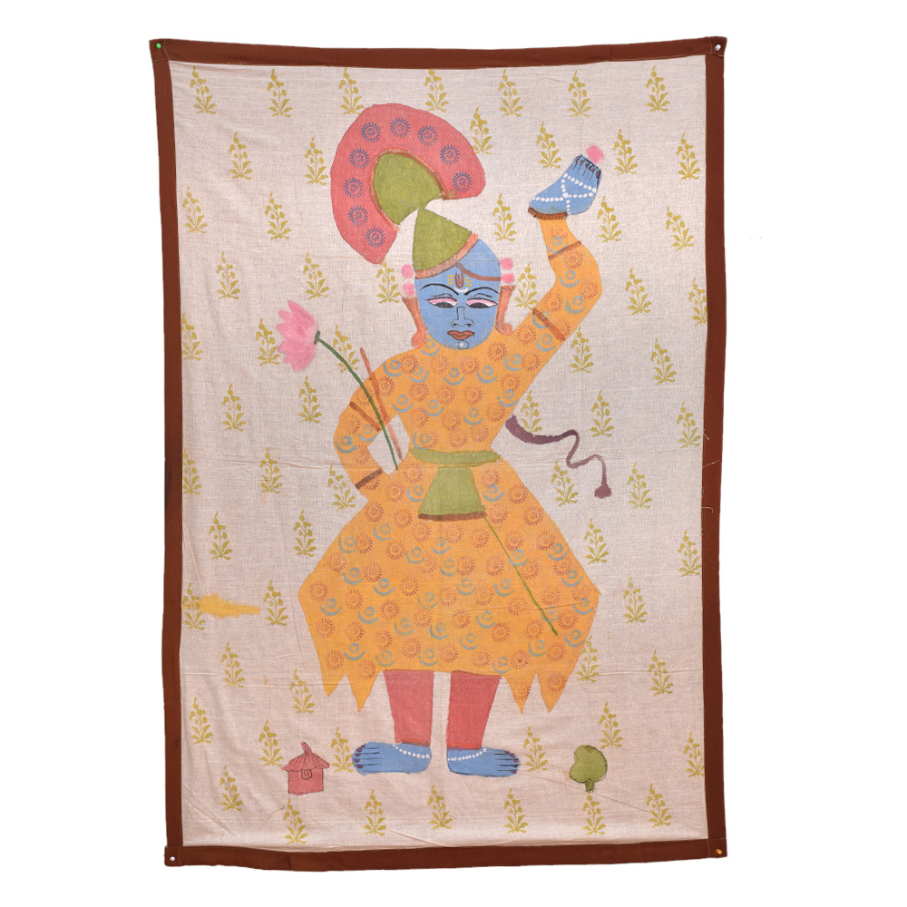Lord Krishna is one of Hinduism's most cherished deities. He is well-known for his magnificent beauty, intellect, and fun personality. Cloth paintings, which uniquely reflect Lord Krishna's spirit and attractiveness, are one of the most preferred methods to represent him. This handmade Lord Krishna cloth painting is a beautiful work that takes a talented hand to complete. The painting's exquisite features and brilliant colours make it a captivating piece of art. Lord Krishna, a Hindu god noted for his heavenly beauty and lovely nature, is shown in the picture. The choice of colours is one of the most significant components of a handmade Lord Krishna cloth painting. The artist chooses colours that best reflect Lord Krishna's characteristics, such as blue for his complexion and orange for his garments. Each hue is applied with accuracy and care, resulting in a genuine portrayal of Lord Krishna. Intricate elements such as Lord Krishna's jewels, peacock feathers, and flute are also included in the artwork. The artist spends hours polishing these details, giving the painting depth and substance. The end product is a work of art that perfectly reflects Lord Krishna's incomparable beauty and charm. A handmade cloth painting of Lord Krishna is a work of art and a symbol of devotion. Many hang these paintings in their homes or temples to demonstrate their love and reverence for Lord Krishna. Each artwork is one-of-a-kind and conveys a particular tale, making it a prized property for many people. Cloth paintings of Lord Krishna are not only gorgeous pieces of art, but they also have deep spiritual value. Many Hindus hang these paintings in their homes or temples to worship Lord Krishna and connect with their faith. The paintings are said to provide good fortune, wealth, protection, and direction.
