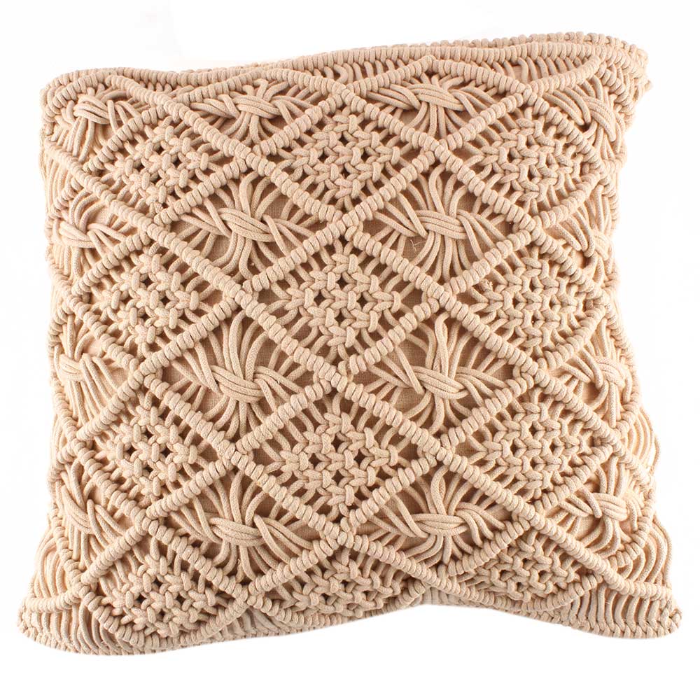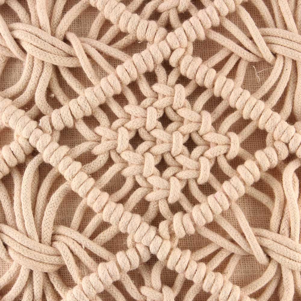Macrame pillow is a one-of-a-kind design created after hours of hand knotting with macrame cord and natural materials, giving the room a minimalist vibe and generating a peaceful atmosphere.