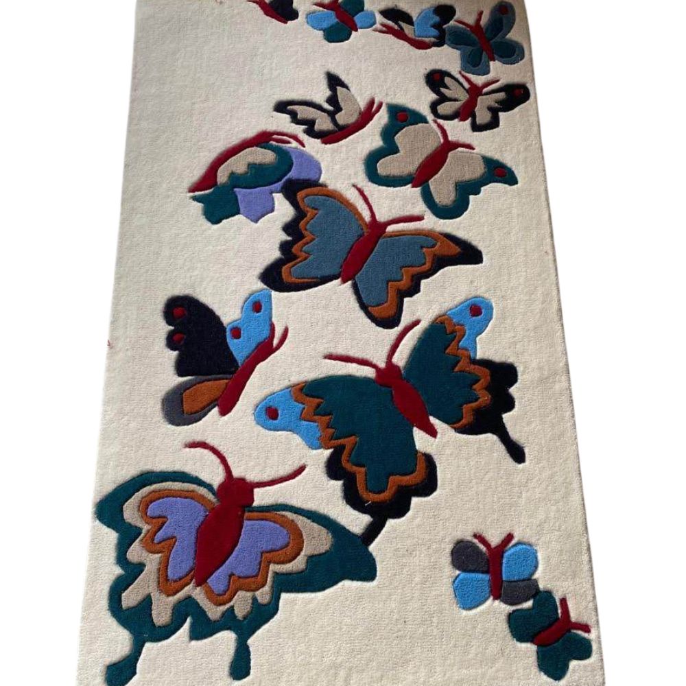 Product Overview This hand-tufted wool rug is designed to brighten your space with its playful butterfly motif and bold colors. Each butterfly is crafted with vibrant shades of teal, blue, lilac, red, and earthy browns, all set against a soft cream background. The texture is plush and inviting, making it an eye-catching statement piece for your living room, bedroom, nursery, or creative corner. Colors & Design Primary Colors: Teal, Blue, Red, Lilac, Brown Background: Neutral Cream Pattern: Multiple butterflies in different sizes, creating a lively, layered effect that feels both whimsical and artistic Each butterfly is outlined and carved to give depth and dimension, allowing the design to stand out beautifully on the wool surface. Available Sizes We offer a wide range of standard and custom sizes, including: Rectangular: 23 ft up to 1218 ft Square & Round: 55 ft up to 1515 ft Runners: 266 ft up to 315 ft Looking for a special dimension? Message us for custom orders. Customization Choose your preferred size Request color changes to match your dcor Bulk and gift orders available We take.
