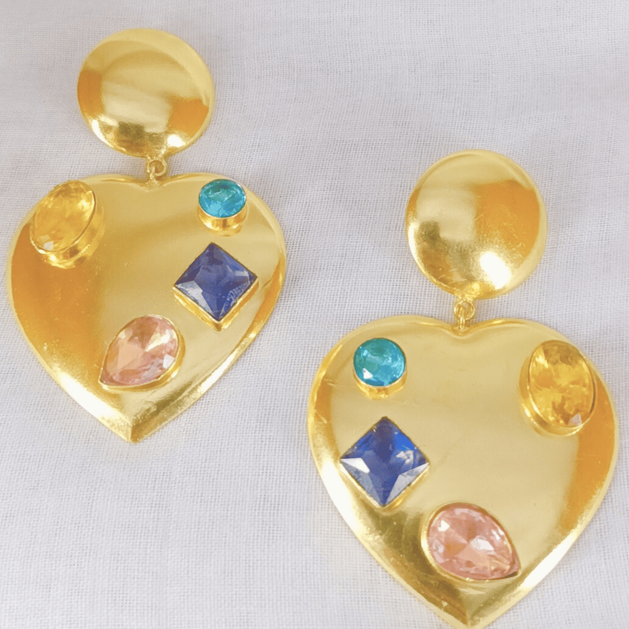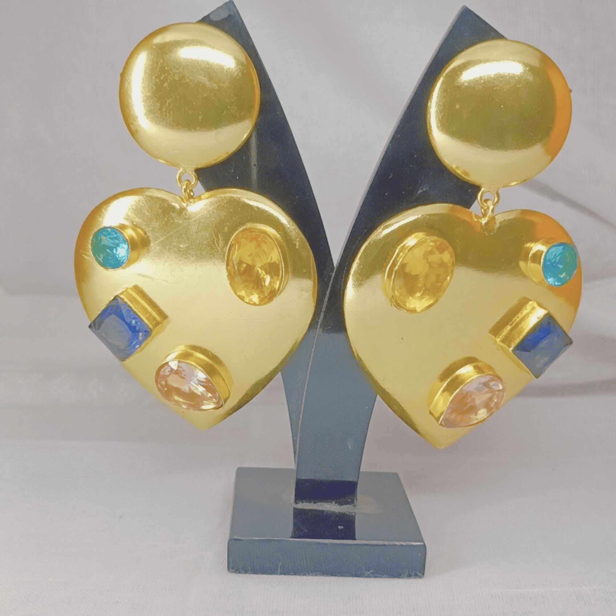 These Colorful CZ Stone Earrings are a celebration of bold color, handcrafted detail, and expressive design. Made from solid brass and adorned with a spectrum of sparkling cubic zirconia stones, each earring showcases a lively arrangement that catches the light from every angle. The large 3.14-inch silhouette adds dramatic elegance, making this pair perfect for women who love statement jewelry with artistic, handmade charm. Radiant, vibrant, and full of personality—these earrings elevate any look.