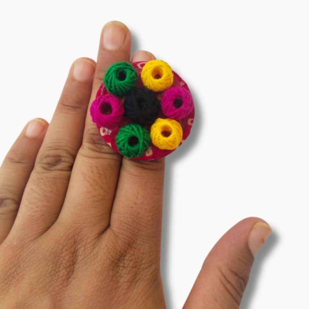 Wear this ring with solid-colour outfits to let the Bandhani print stand out, and store it in a dry pouch to maintain fabric vibrancy.