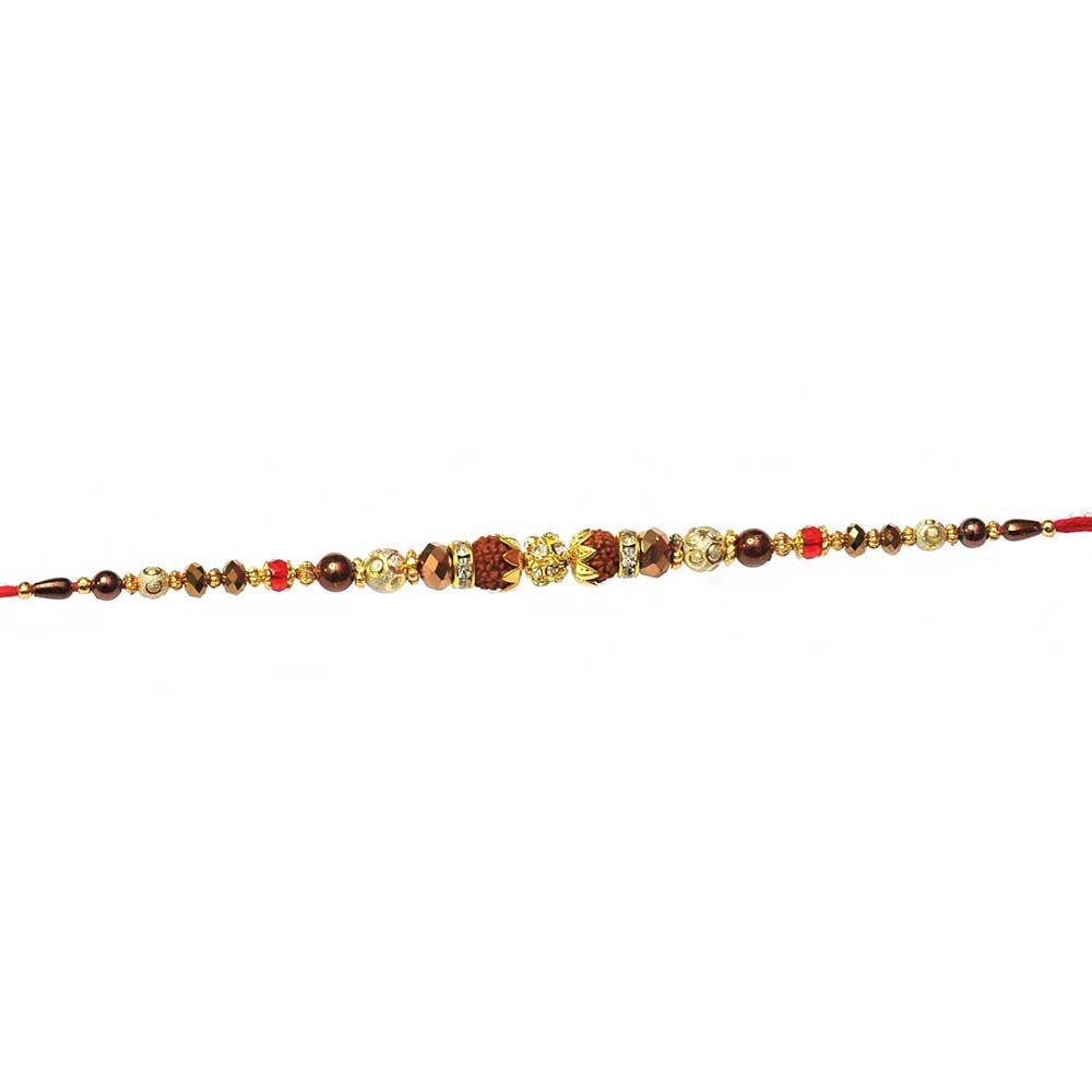 Copper Color Beads Rakhi with Rudraksh and Diamonds Rakhi