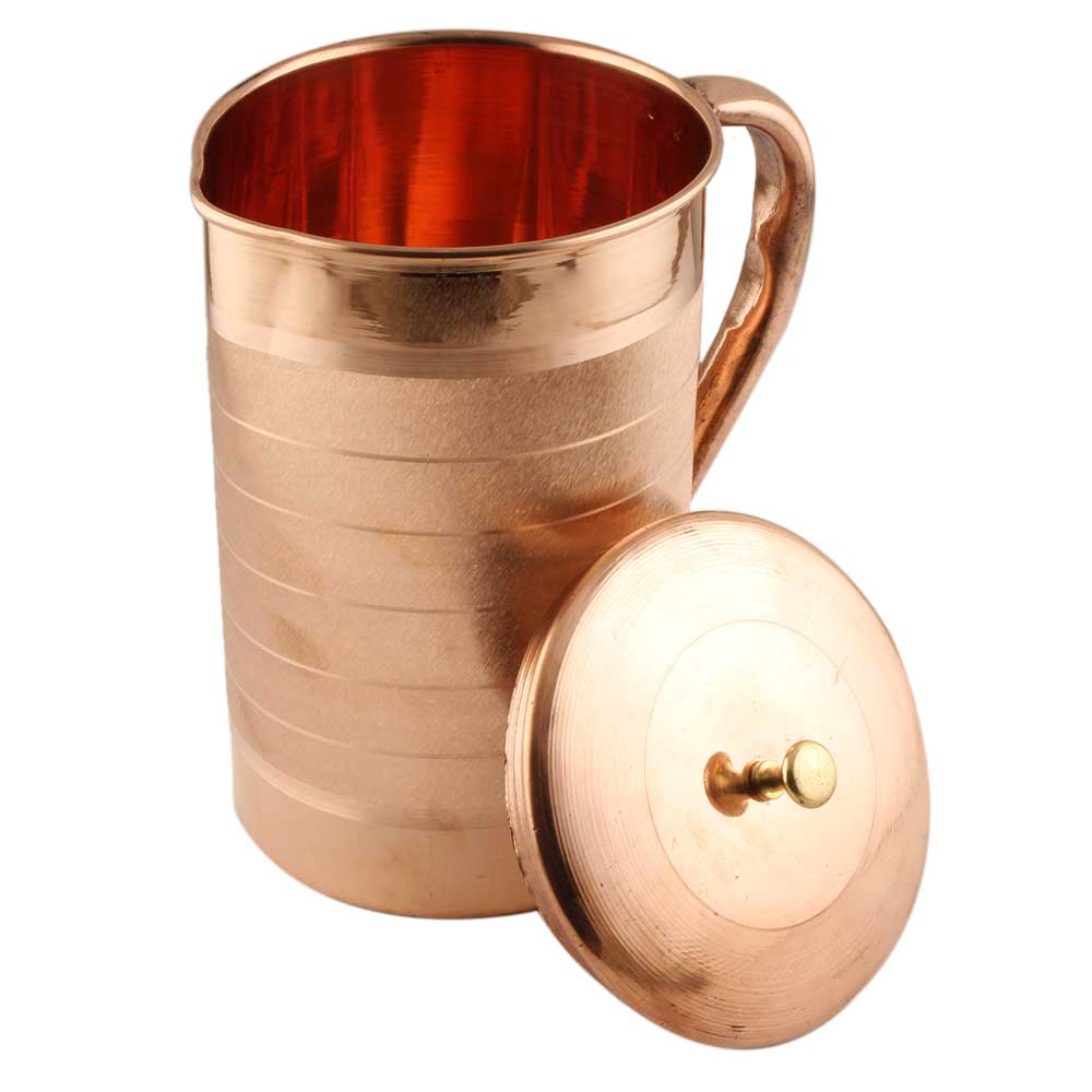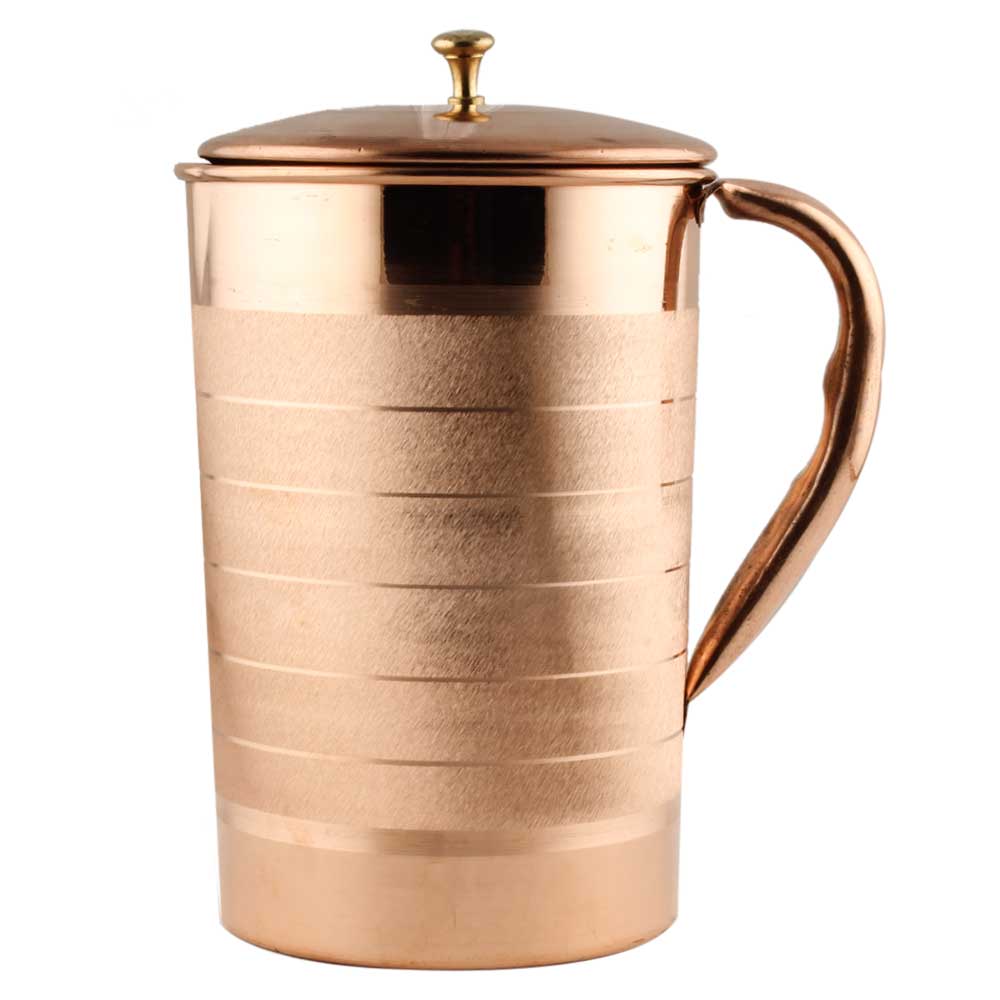 Handmade Luxurious design copper jug or pitcher not only has numerous health benefits but it also gives a decorative look to the table or display shelf where it is placed. Use it for flower arrangement, diwali gift, wedding gift, anniversary gift, souvenir or house warming gift.