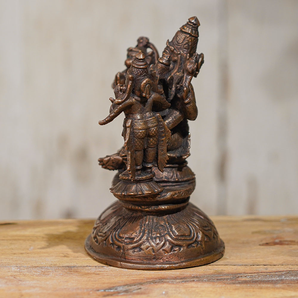 Bring the strength and beauty of the masterfully crafted Lakshmi Narasimha with Hanuman and Garuda brass statue into your home. Lord Vishnu is a major divinity in Hinduism and Hindu mythology. He is recognised as a lover of harmony and cosmic justice, and he resolves conflicts between god and humanity. The Hindu trio, also known as Trimurti, or the holy trinity of gods who represent the three stages of cosmic growth, consists of Vishnu, Brahma, and Shiva. Lord Vishnu statues are believed to provide patience, wisdom, prosperity, and prosperity to the house or workplace where they are placed.