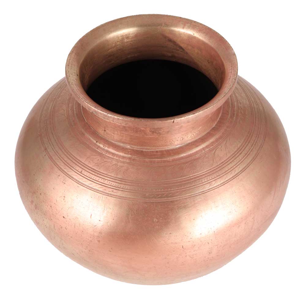 Skilled craftsmen of India create this hindu worship copper pot . It will increase the designer value of your home and food court. Copper metal adds beauty and an add style to your home design or decor. This copper pot can easily be transformed into a fantastic gift for wedding, festive, special occasion, and anniversaries.