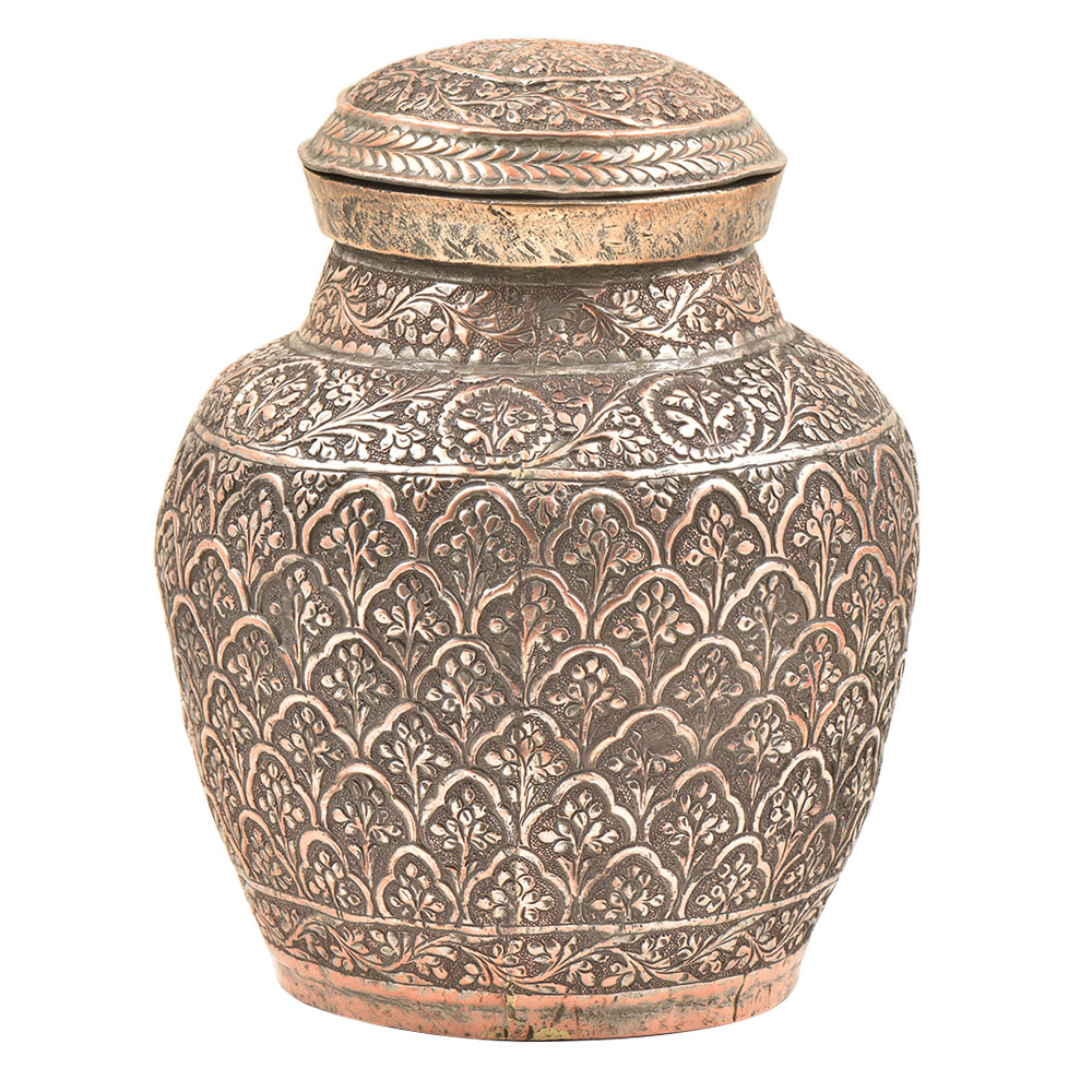 • Copper Repousse Hand Made Lidded Jar Or Pot