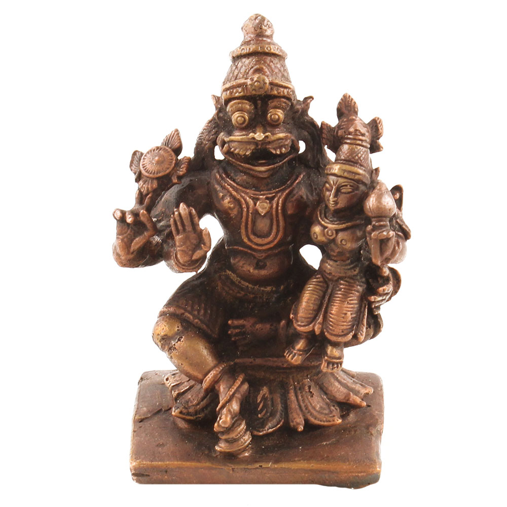 Lord Narasimha Puja, Lord Vishnu's fourth incarnation, is undoubtedly the most intense manifestation of Lord Vishnu. Everyone in Vaishanism holds him in high regard. The Puja helps worshippers achieve peace of mind and gives refuge. This Brass Designing Narasimha Idol is intended for Hindu house decoration. His physical form is half man and half lion. Lord Vishnu's avatar was such that he was able to murder the demon and evil monarch Hiranayakashpo and make the youthful Prince Prahlad king in order to regain Justice to the universe.