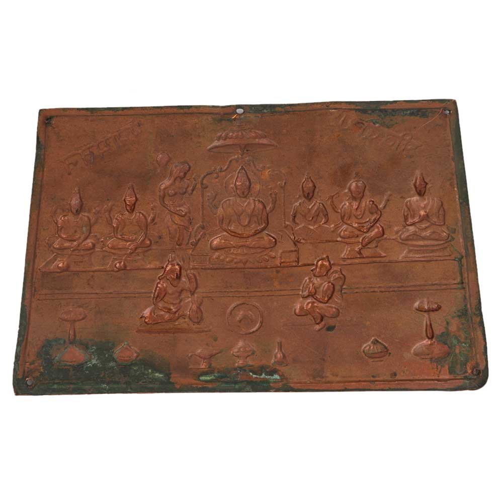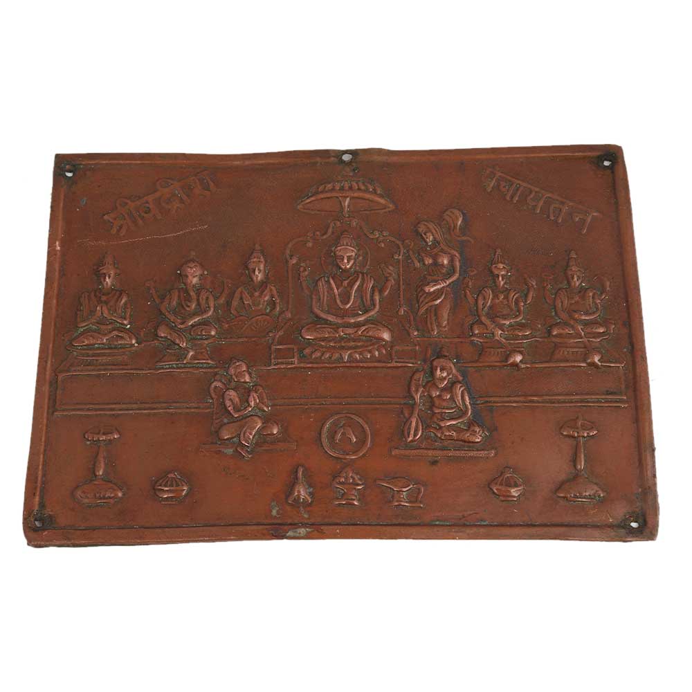 Copper Wall Hanging Indian God Vishnu Bhagwan with Gods Shree Badrish Panchayatan used for worship, puja and temple decoration, souvenir, hotel, restaurant decoration, wedding gift, anniversary gift and special gift on Diwali for your near and dear ones.