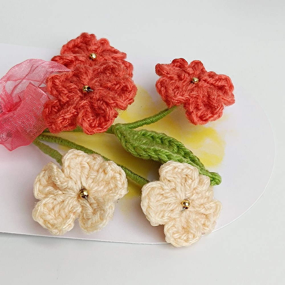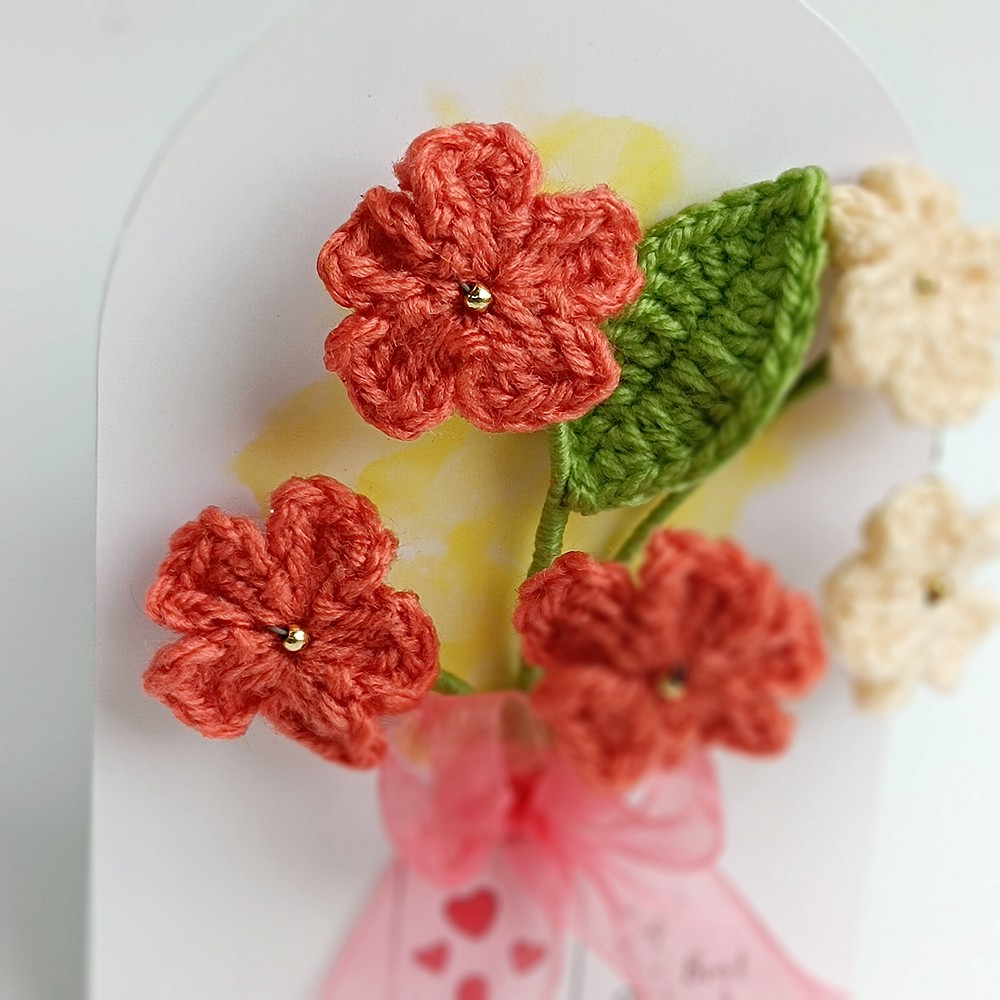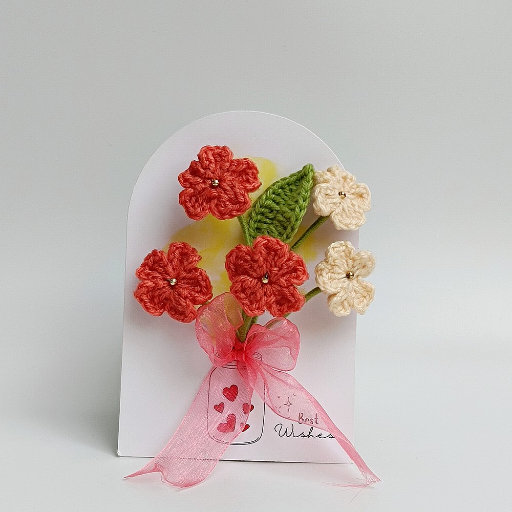 Keep your red crochet piece away from moisture and direct sun to prevent dust and fading. Dust gently with a soft brush or a hairdryer on cool, and reshape stems carefully if needed.