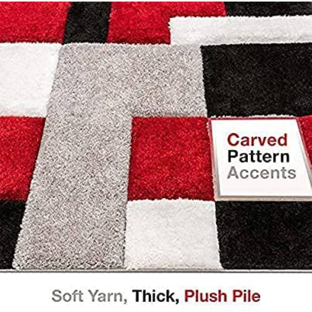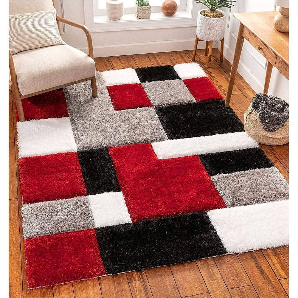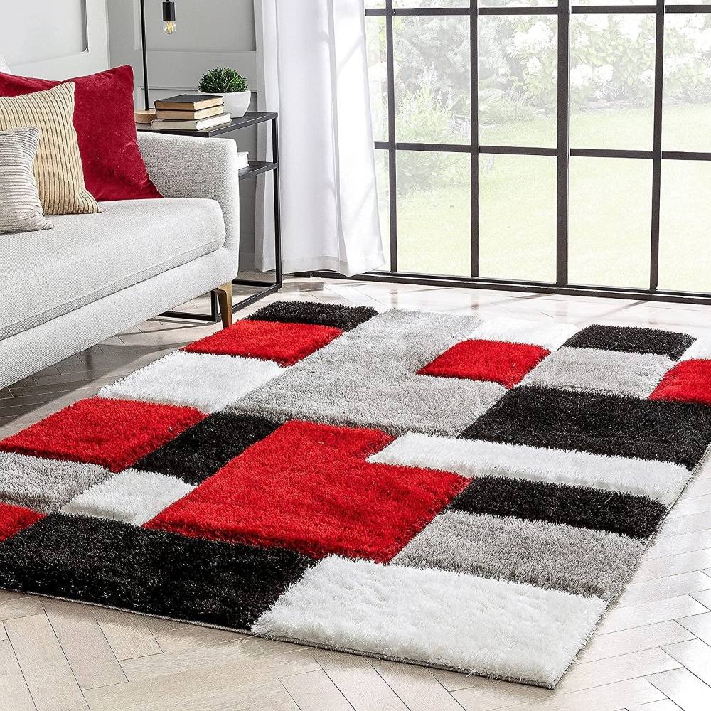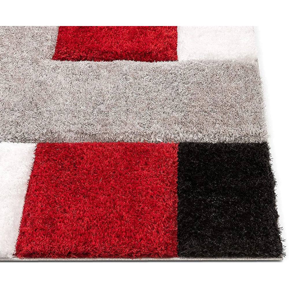 This modern Red & Black shaggy rug crafted from high-quality polyester adds energy and structure to any interior. The bold block design features striking red, black, white, and grey tones, creating a sophisticated geometric statement. Each rug is handmade, packed, and quality-checked by skilled Indianshelf artisans.