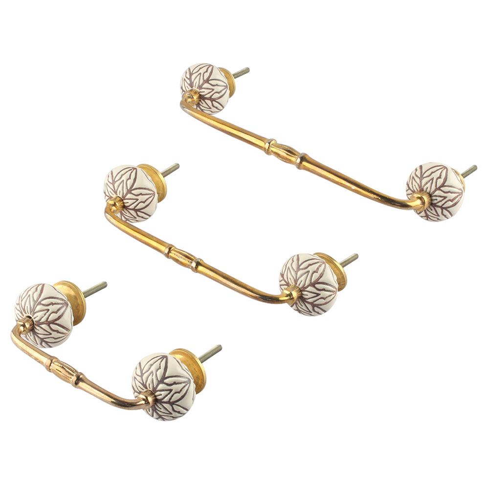 Cream Amarylis Floral Etched Ceramic Bridge Handle. Ideal for Drawer, Dresser, Cabinet, Wardrobe, Cupboard and Almirah.