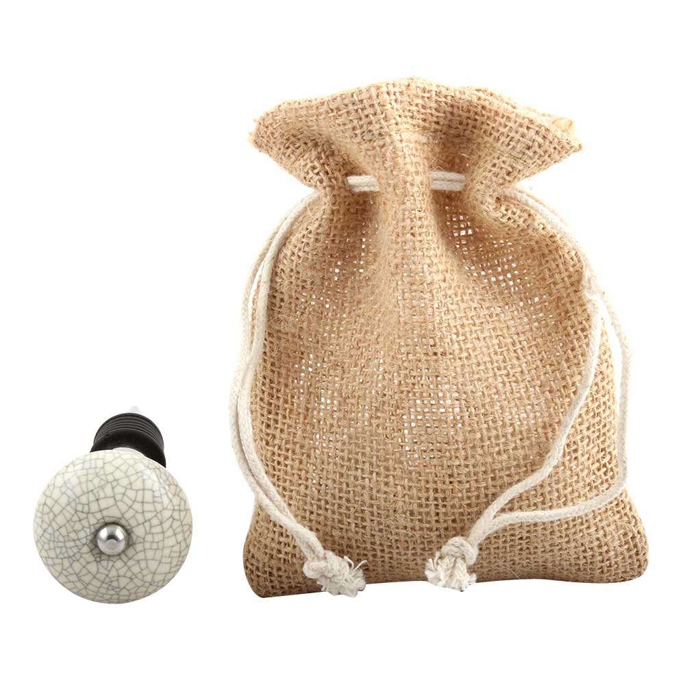 Cream And Black Crackle Ceramic Wine Stopper.zinc alloy wine bottle stopper with attractive Jute Bag Packaging.