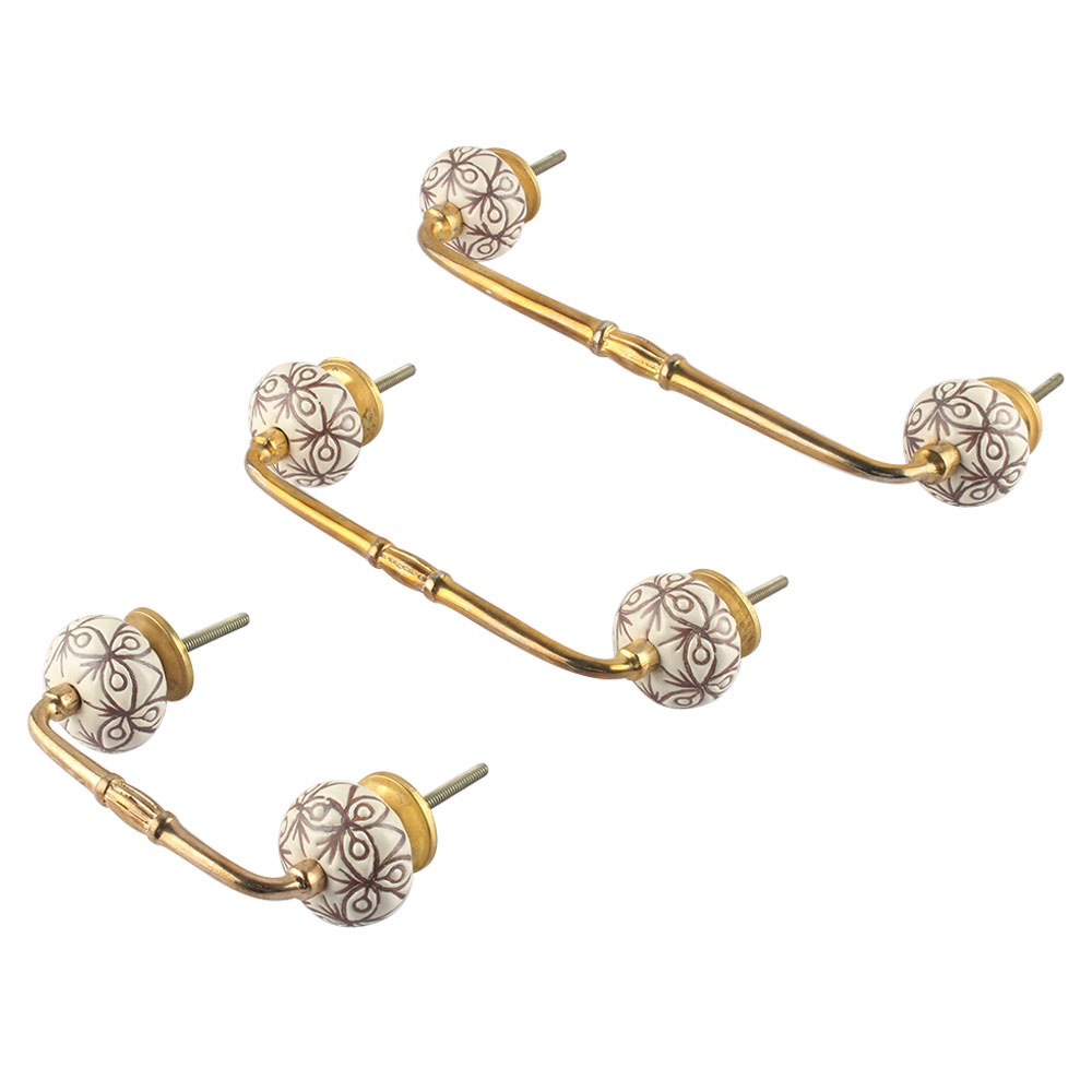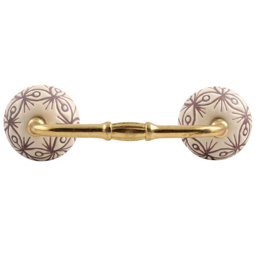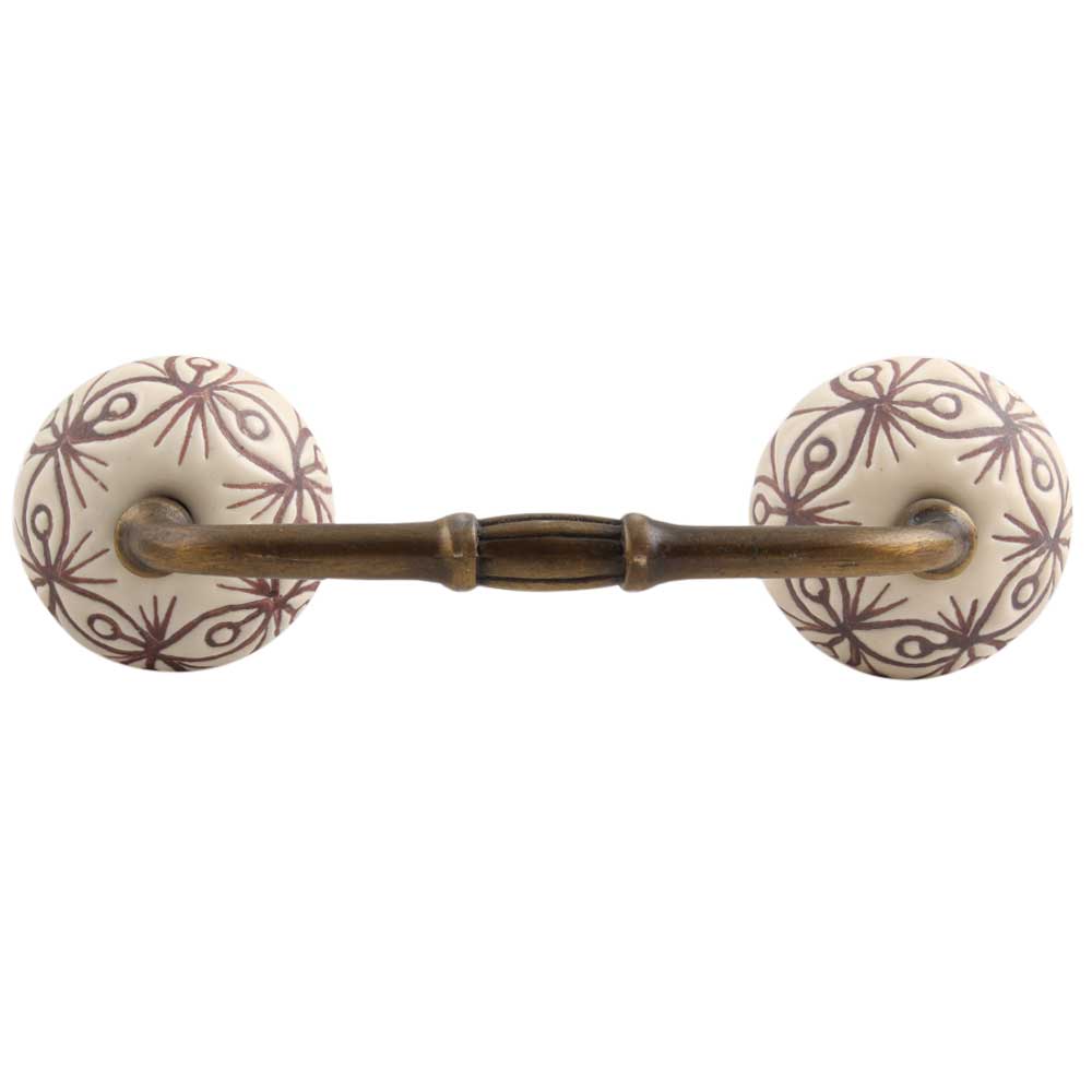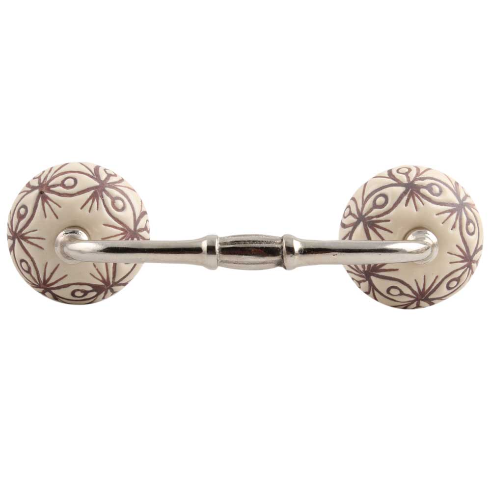 Cream Brown Floral Etched Ceramic Bridge Handle. Ideal for Drawer, Dresser, Cabinet, Wardrobe, Cupboard and Almirah.