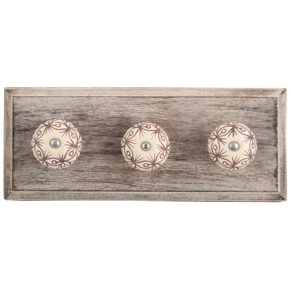 Cream Brown Floral Etched Ceramic Wooden Hook. A Perfect Complement to the Soft Tone of the Wood are these White Traditional Hat & Coat Hook Made of Genuine Porcelain and Brass. It can be use to Hang Jewellery, Leashes, Towels, Scarves, Light Weight Sweaters, Caps Etc.