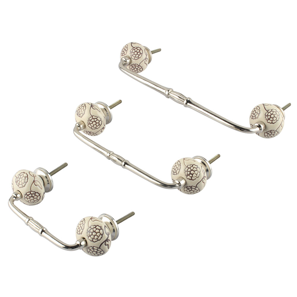 Cream Brown Marigold Etched Ceramic Bridge Handle. Ideal for Drawer, Dresser, Cabinet, Wardrobe, Cupboard and Almirah.