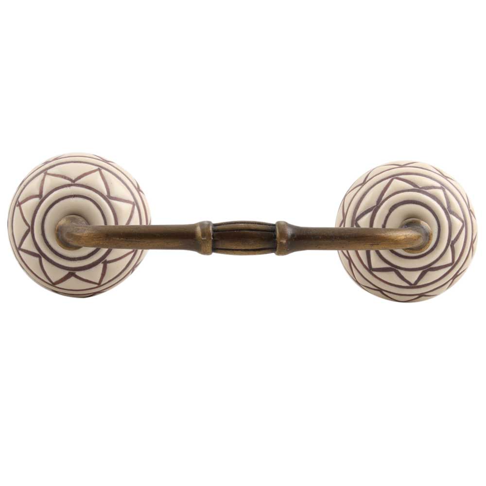 Cream Brown Pattern Etched Ceramic Bridge Handle. Ideal for Drawer, Dresser, Cabinet, Wardrobe, Cupboard and Almirah.