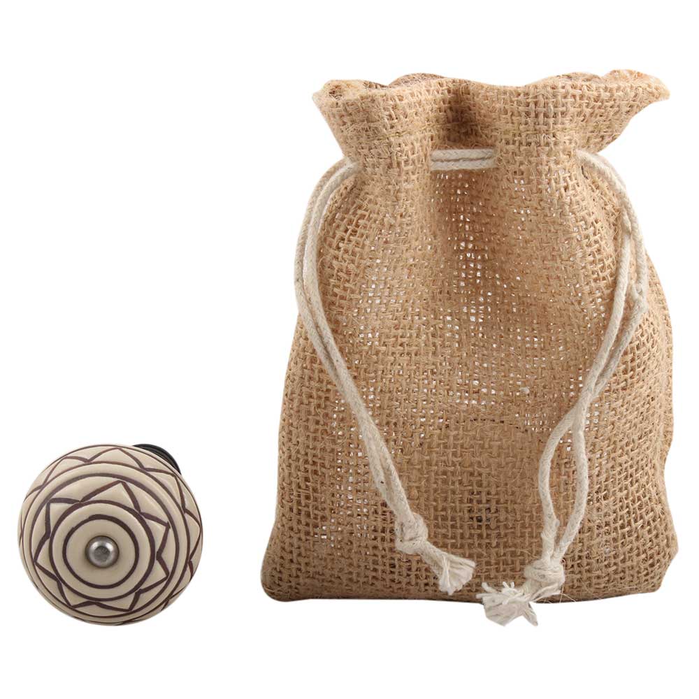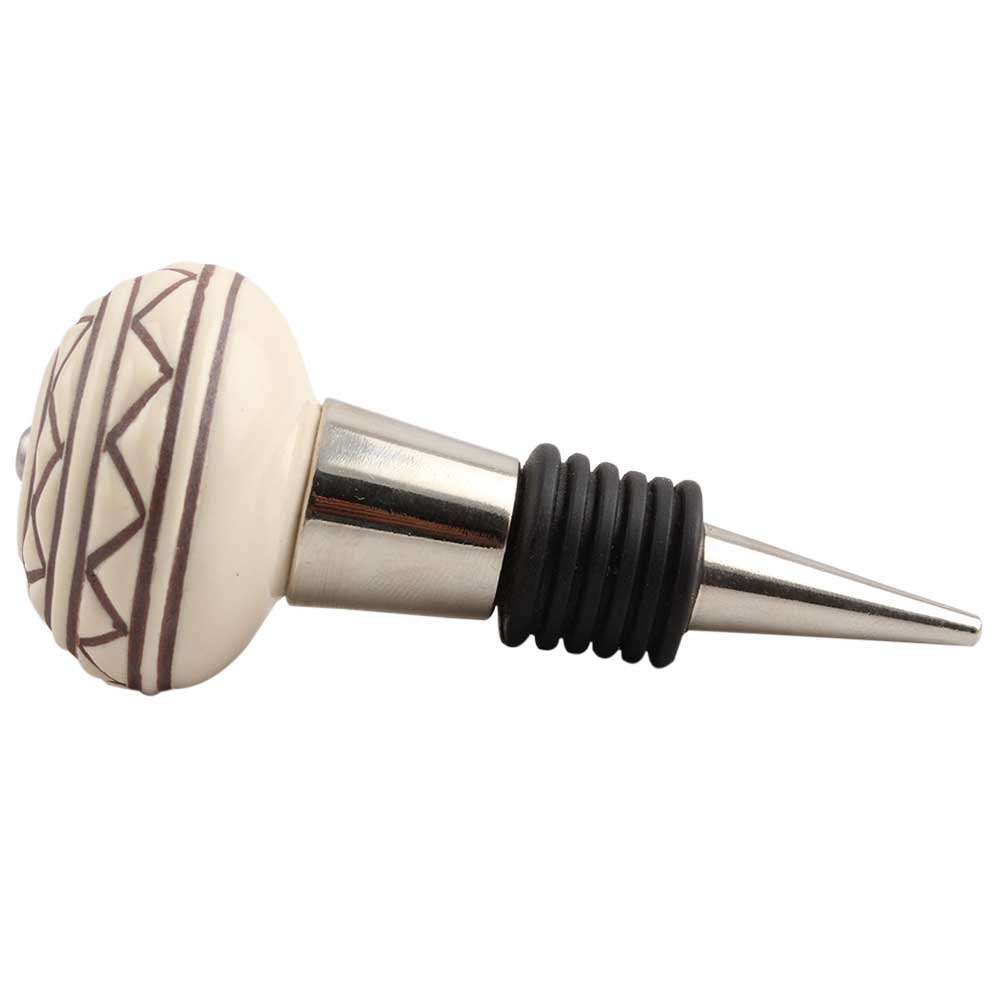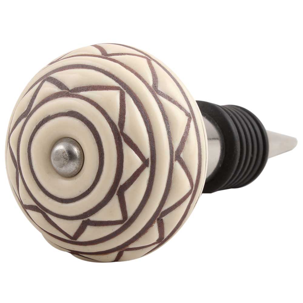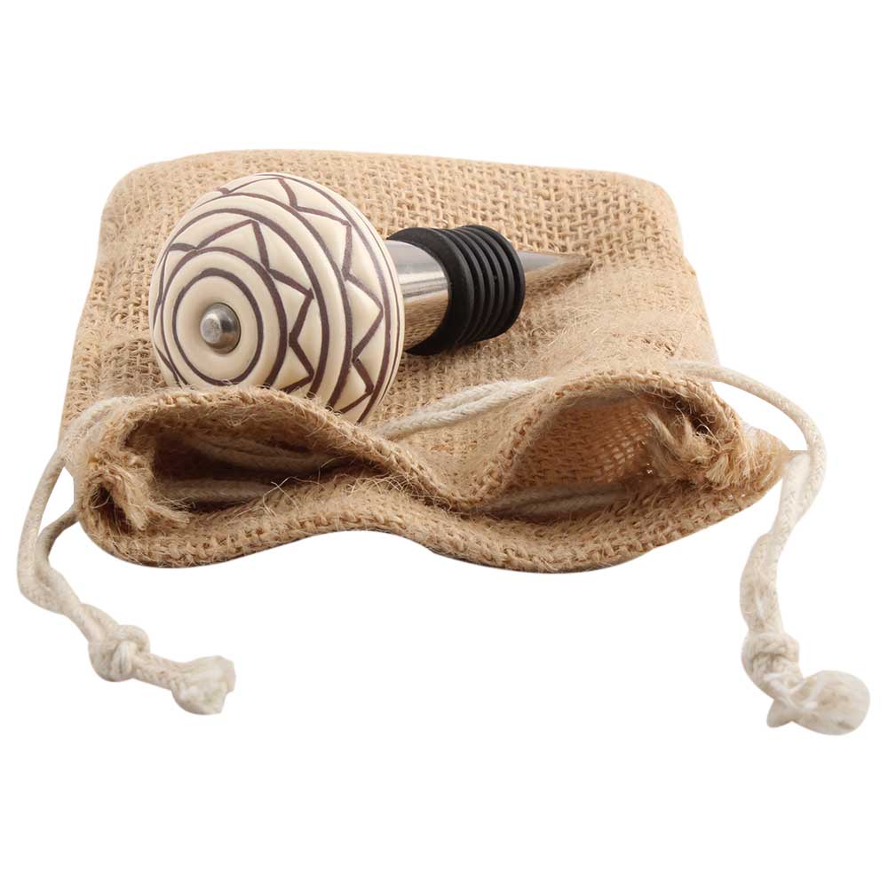 Cream Brown Pattern Etched Ceramic Wine Stopper.zinc alloy wine bottle stopper with attractive Jute Bag Packaging.