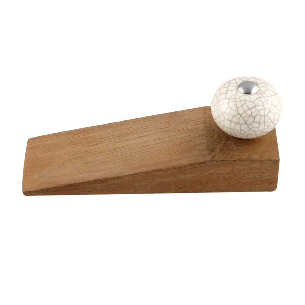 Handmade Ceramic and Wooden Door Stopper.Wooden Door Stopper with a Ceramic Knob to Carry it Easily. This Wooden Door Stopper has Glue Dots under it to Ensure that it does not Slip. It is Handmade by the Craftsmen of India and this Innovative Door Stopper won't Disappoint You.
