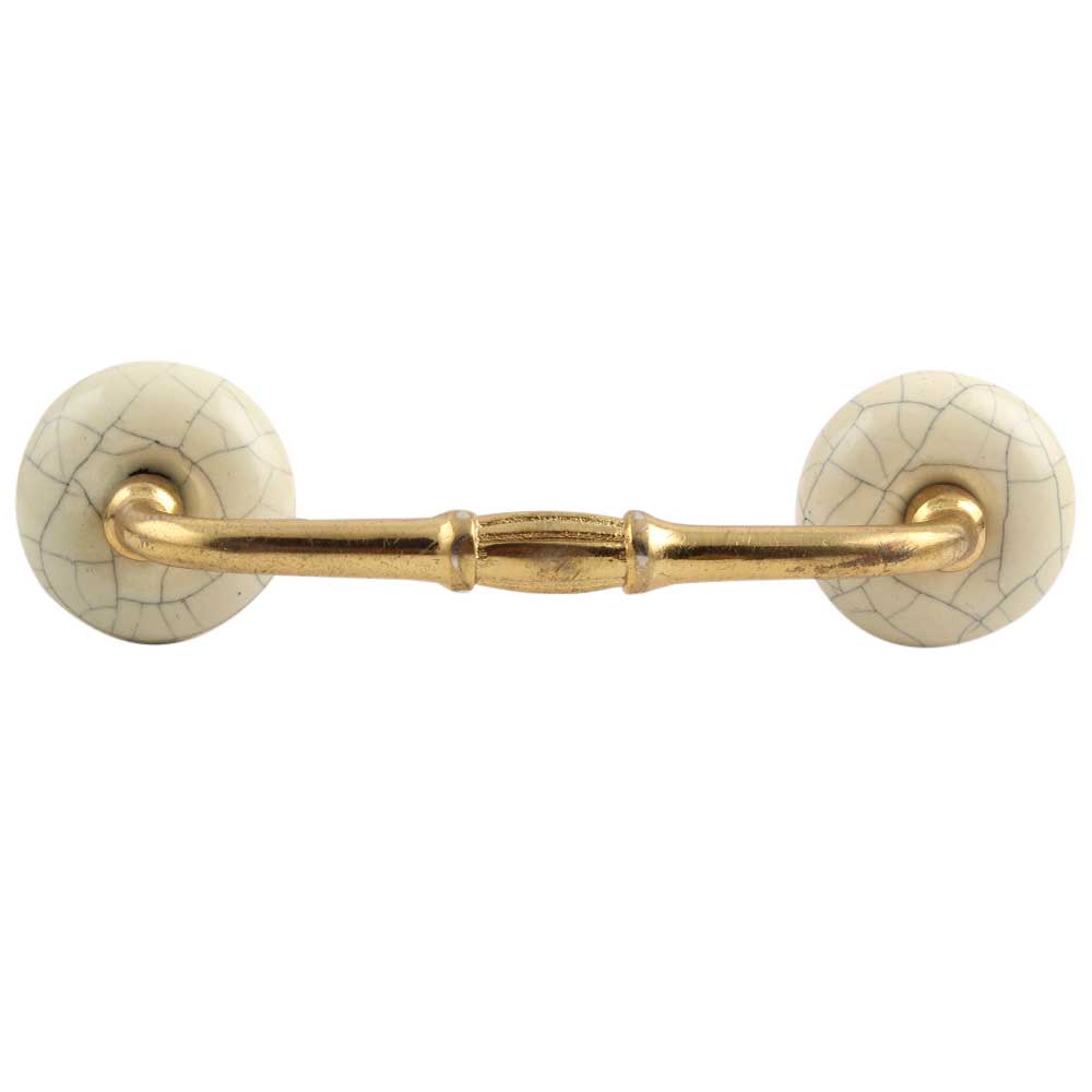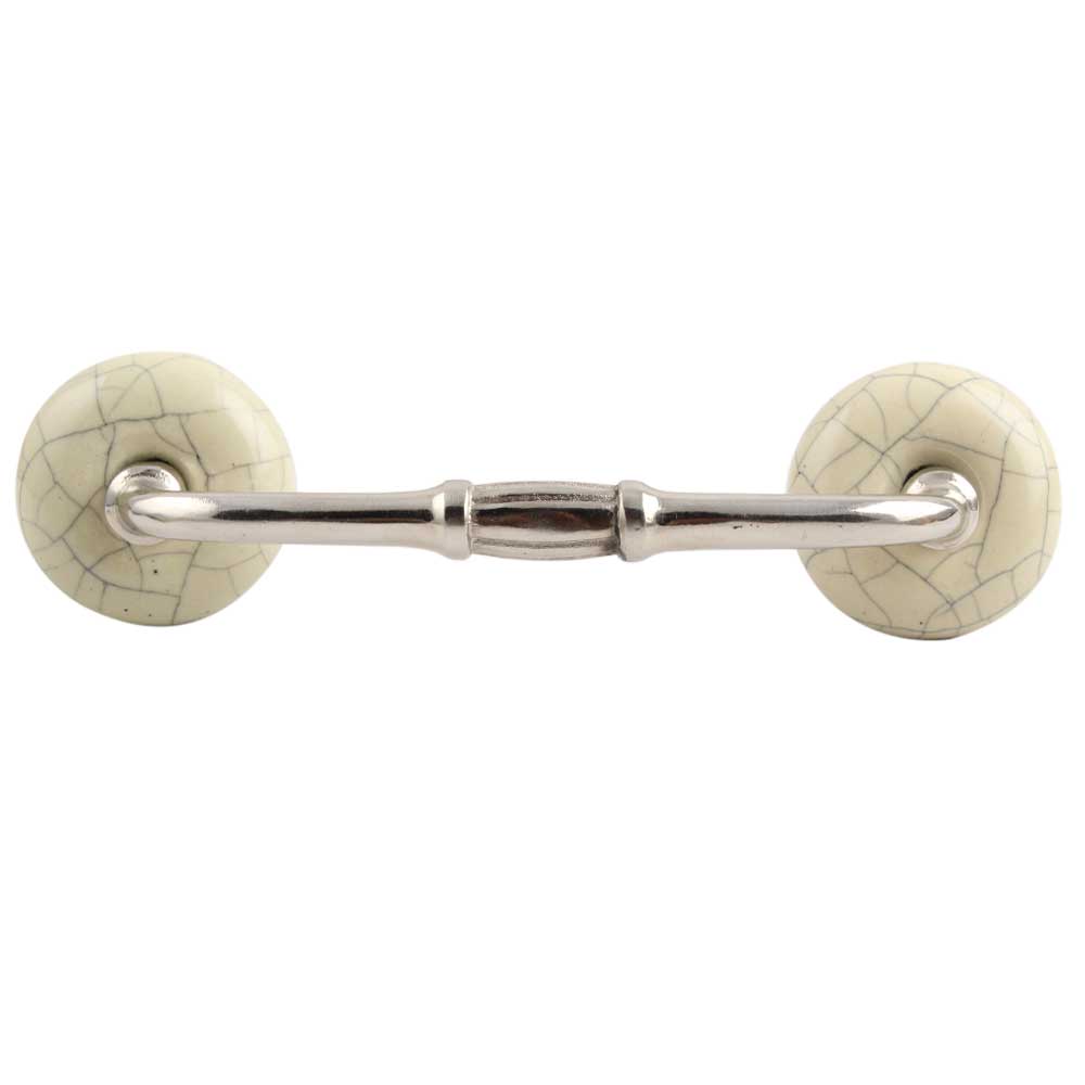 Cream Crackle Handmade Ceramic Bridge Handle. Ideal for Drawer, Dresser, Cabinet, Wardrobe, Cupboard and Almirah etc.