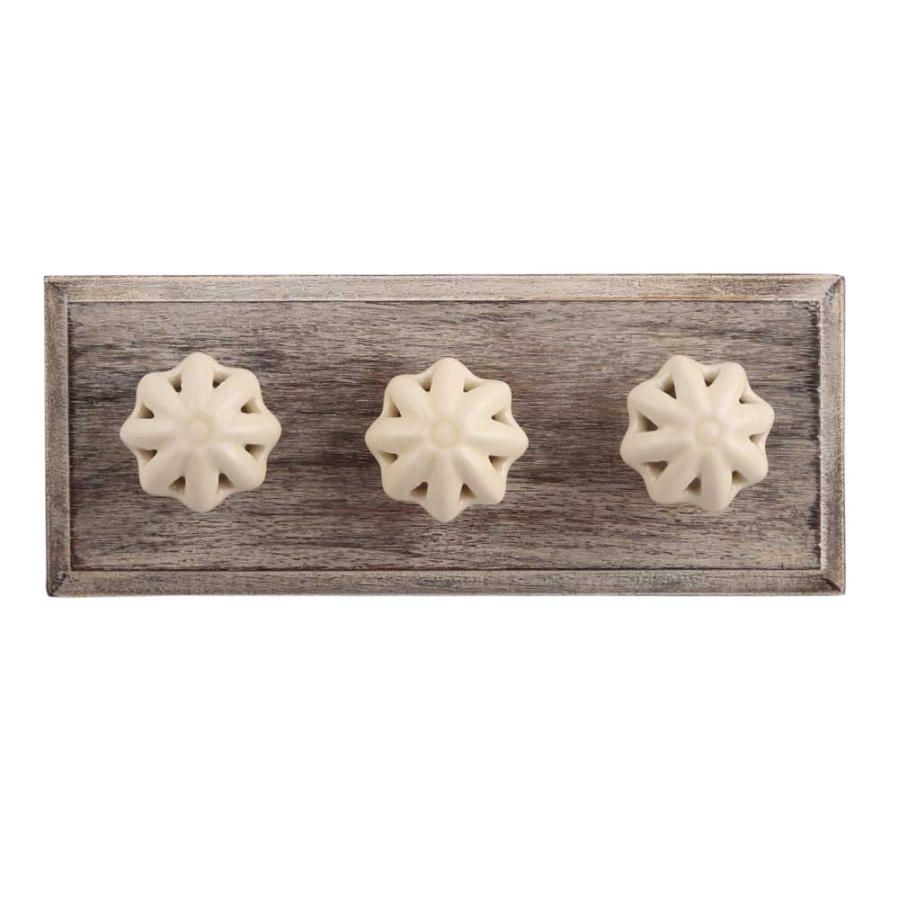 Cream Daffodil Flower Ceramic Wooden Hook. A Perfect Complement to the Soft Tone of the Wood are these White Traditional Hat Coat Hook Made of Genuine Porcelain and Brass. It can be use to Hang Jewellery, Leashes, Towels, Scarves, Light Weight Sweaters, Caps Etc.