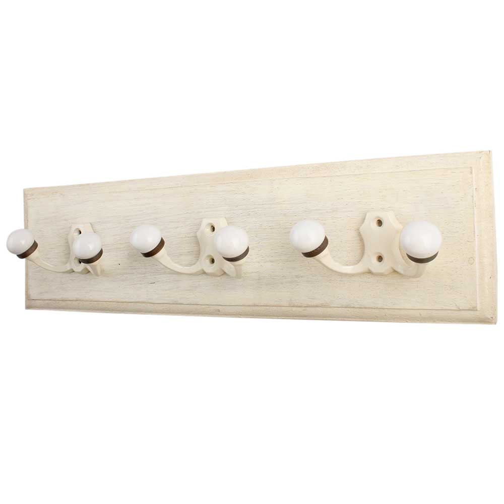 Cream Double Loop Ceramic Iron Wooden Hook. A Perfect Complement to the Soft Tone of the Wood are these White Traditional Hat & Coat Hook Made of Genuine Porcelain and Brass. It can be use to Hang Jewellery, Leashes, Towels, Scarves, Light Weight Sweaters, Caps Etc.