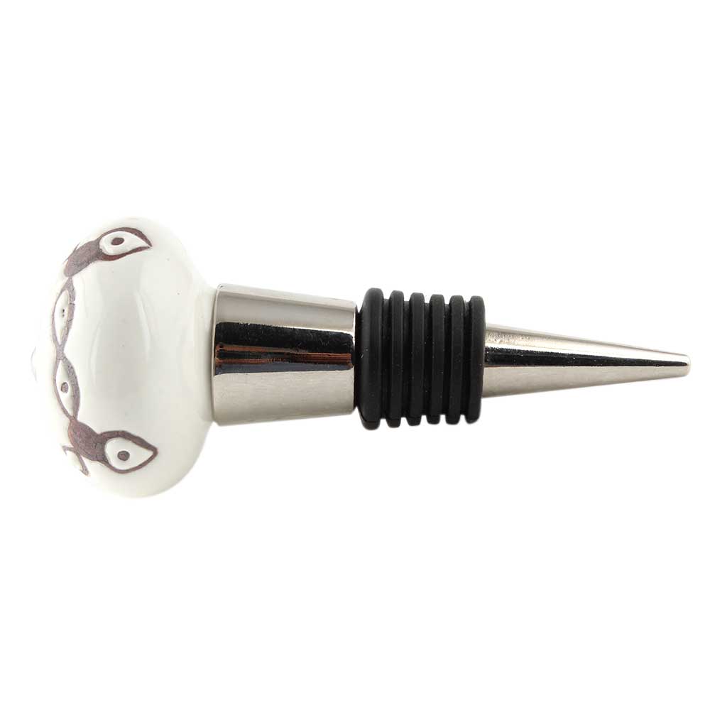 Cream Etched Chain Design Ceramic Wine Bottle Stopper. Zinc Alloy Wine Bottle Stopper with Attractive Jute Bag Packaging.