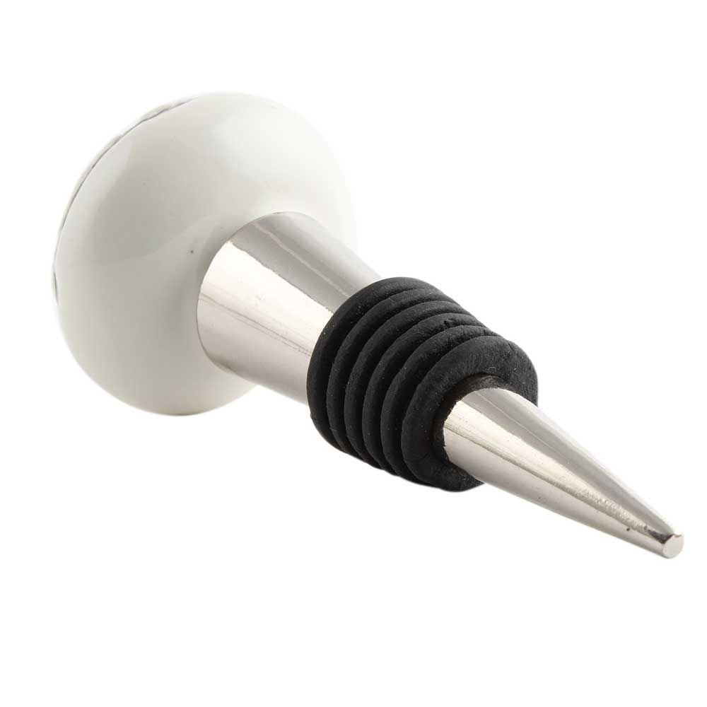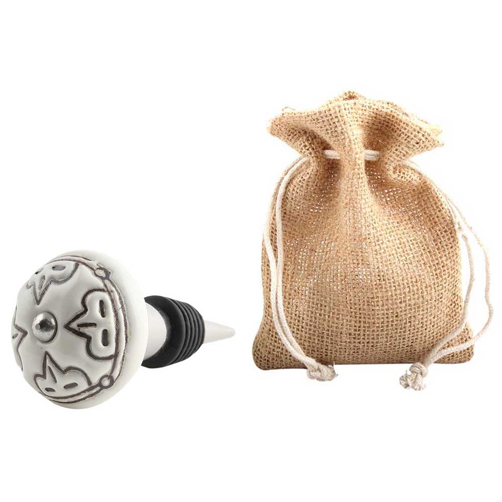 Cream Etched Floral Ceramic Wine Bottle Stopper. Zinc Alloy Wine Bottle Stopper with Attractive Jute Bag Packaging.