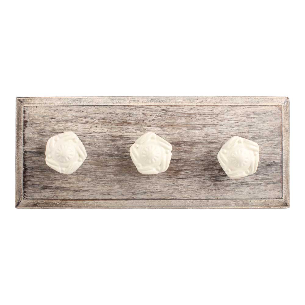 Cream Flower Metal Wooden Hook. A Perfect Complement to the Soft Tone of the Wood are these White Traditional Hat & Coat Hook Made of Genuine Porcelain and Brass. It can be use to Hang Jewellery, Leashes, Towels, Scarves, Light Weight Sweaters, Caps Etc.