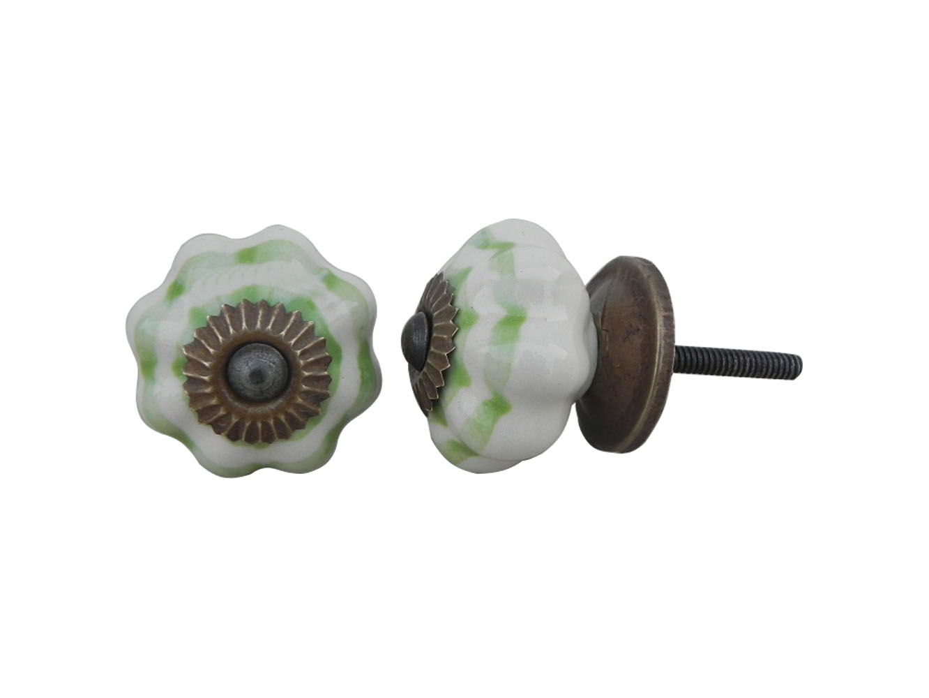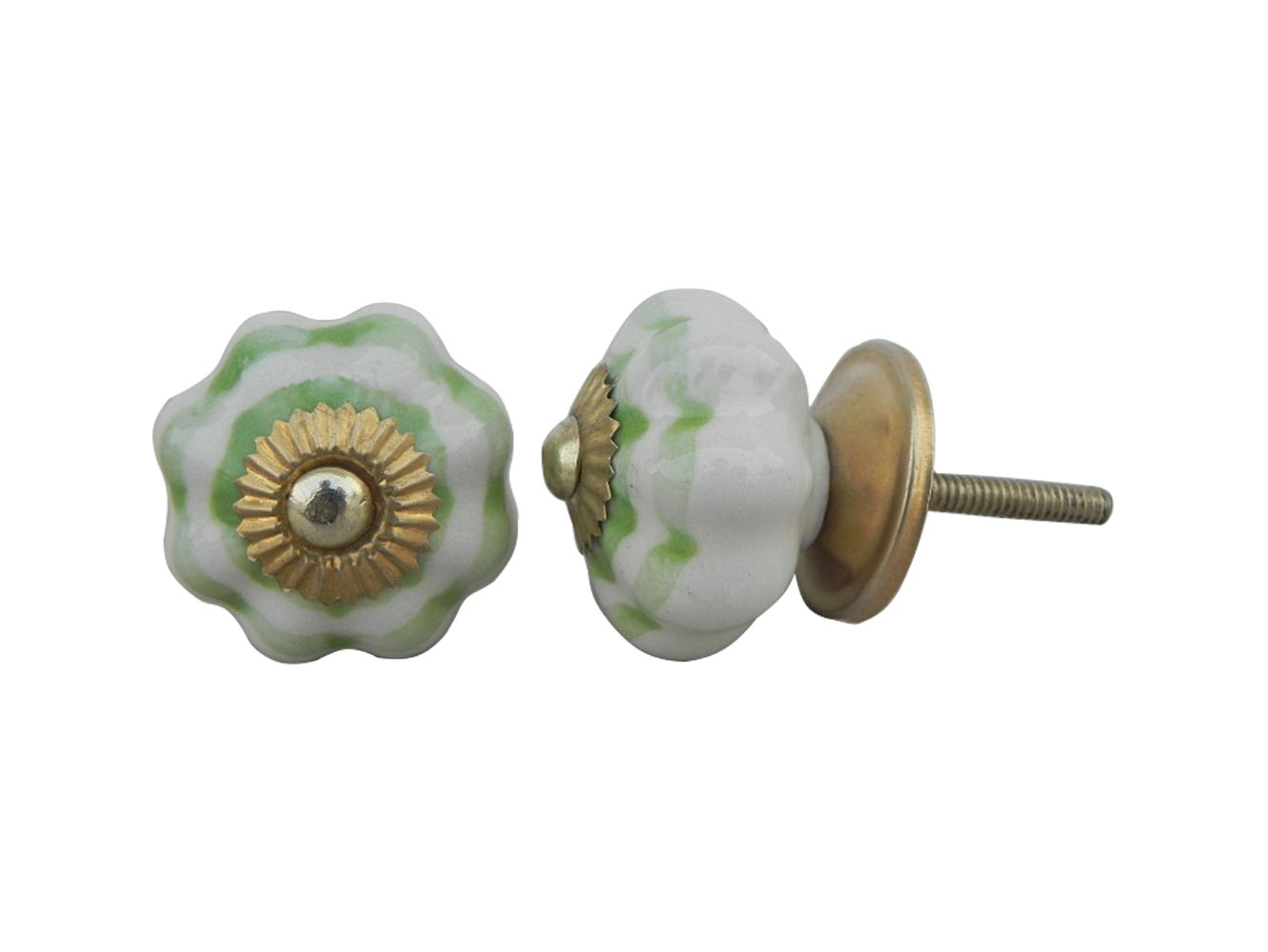 Cream Green Medium Melon Ceramic knob. Ideal for kitchen cabinets, kitchen drawers, dining room, bed room, chest drawers, dressing tables, almirah