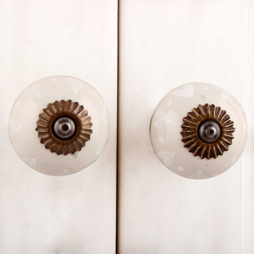 Cream Heart Ceramic Knob. Ideal for kitchen cabinets, kitchen drawers, dining room, bed room, chest drawers, dressing tables, almirah