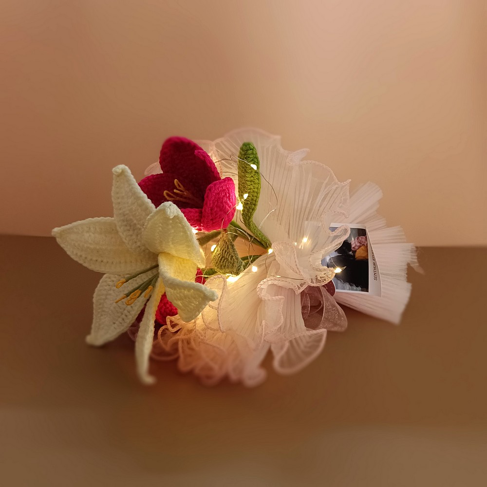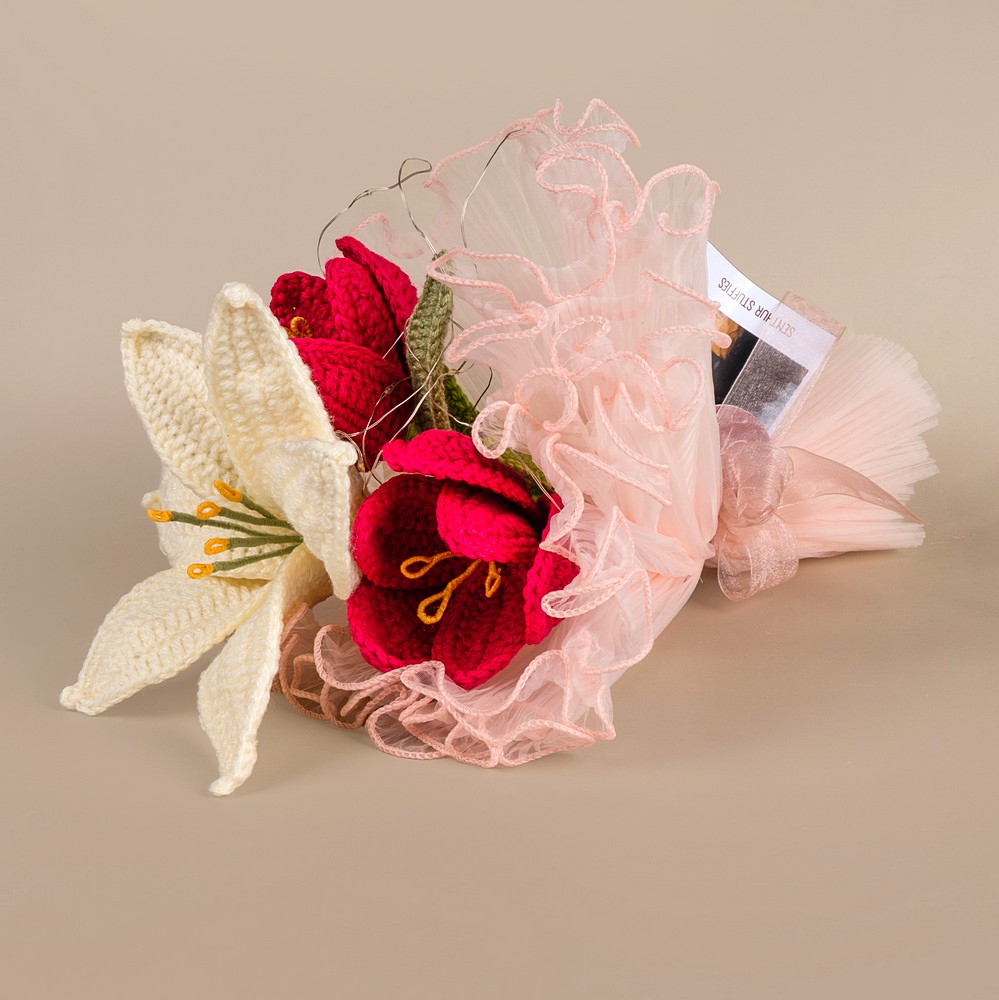 - Expertly crocheted petals and leaves are shaped by hand using premium acrylic yarn and fibre filling, with craft wire giving each bloom bunch a realistic posture