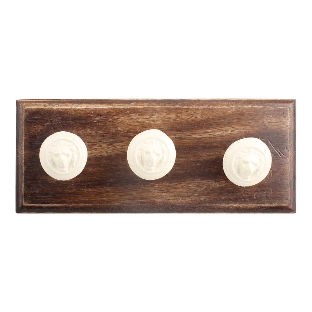 Cream Lion Metal Wooden Hook. A Perfect Complement to the Soft Tone of the Wood are these White Traditional Hat & Coat Hook Made of Genuine Porcelain and Brass. It can be use to Hang Jewellery, Leashes, Towels, Scarves, Light Weight Sweaters, Caps Etc.