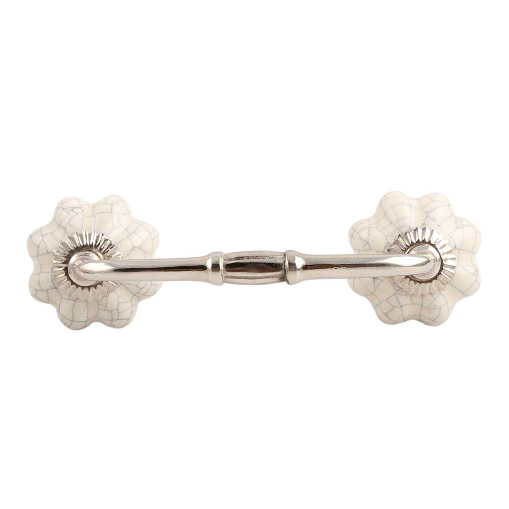 Enhance your home’s aesthetic with the Cream Melon Crackle Ceramic Bridge Handle. This beautifully crafted handle combines the charm of ceramic with the sleekness of a bridge-style design, making it a perfect choice for any modern or traditional cabinetry. With its soft cream color and unique melon crackle texture, this handle offers both elegance and functionality, transforming your kitchen, bathroom, or furniture into a stylish masterpiece.