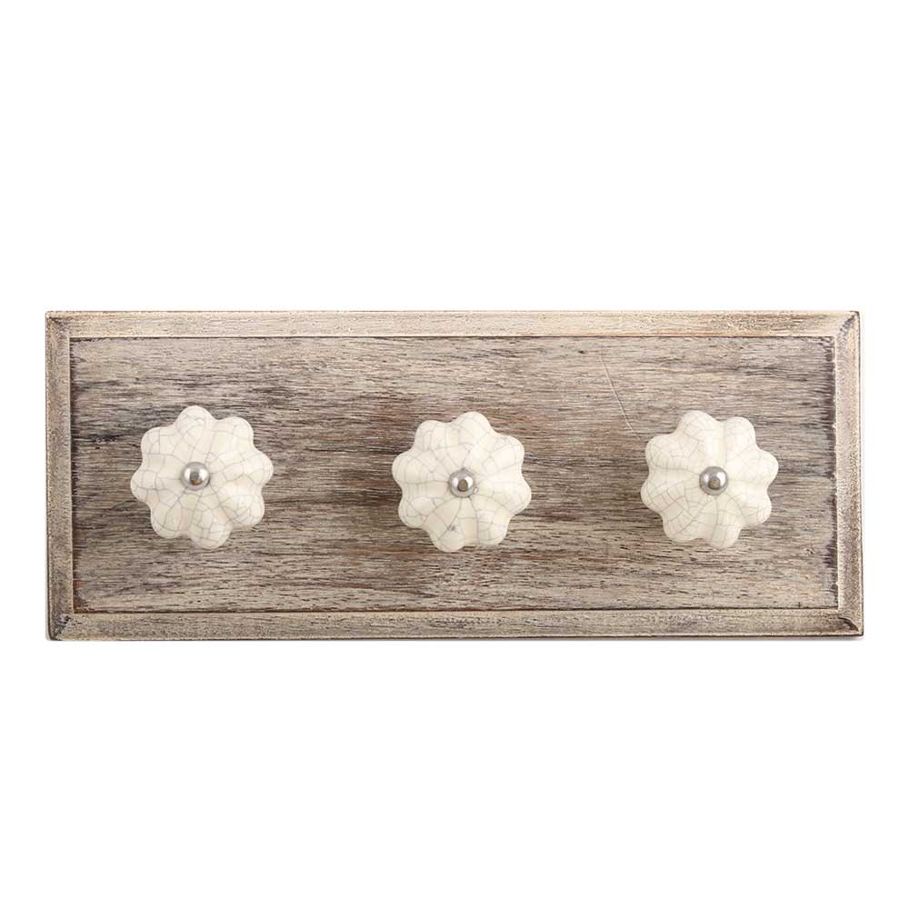 Cream Melon Crackle Ceramic Wooden Hook. A Perfect Complement to the Soft Tone of the Wood are these White Traditional Hat Coat Hook Made of Genuine Porcelain and Brass. It can be use to Hang Jewellery, Leashes, Towels, Scarves, Light Weight Sweaters, Caps Etc.