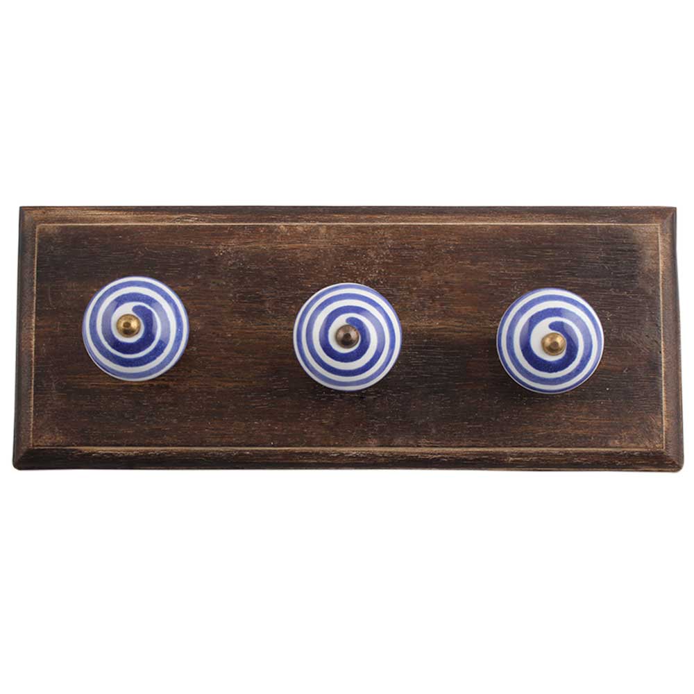 Cream Navy Blue Strip Wooden Hooks . A Perfect Complement to the Soft Tone of the Wood are these White Traditional Hat Coat Hook Made of Genuine Porcelain and Brass. It can be use to Hang Jewellery, Leashes, Towels, Scarves, Light Weight Sweaters, Caps Etc.
