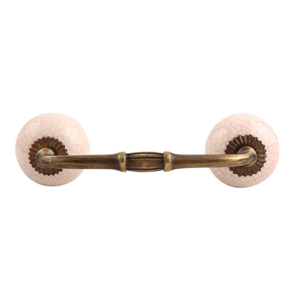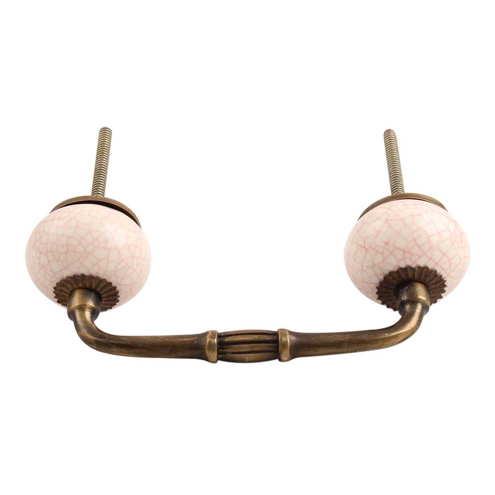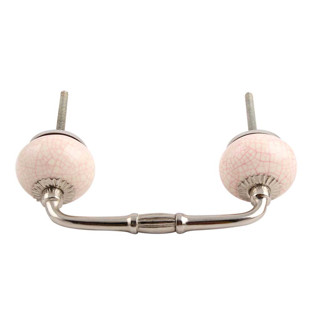 Cream Pink Crackle Ceramic Bridge Handle. Ideal for Drawer, Dresser, Cabinet, Wardrobe, Cupboard and Almirah.