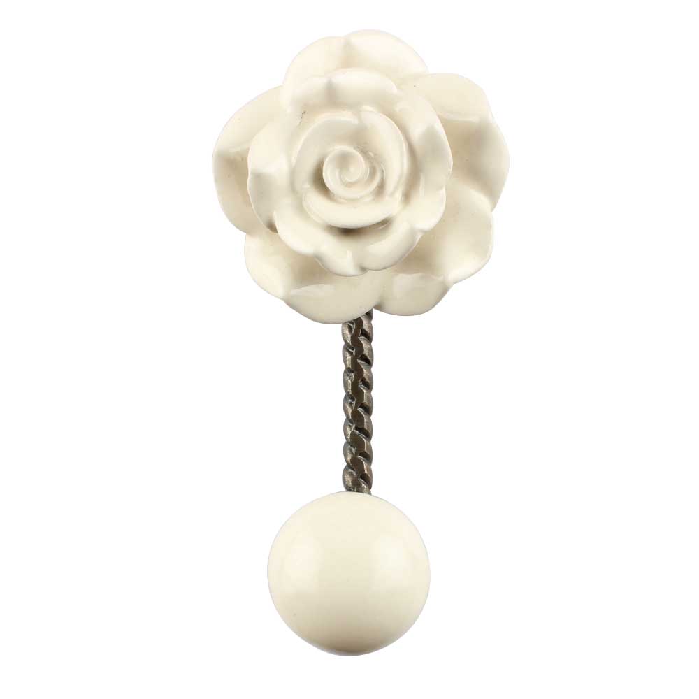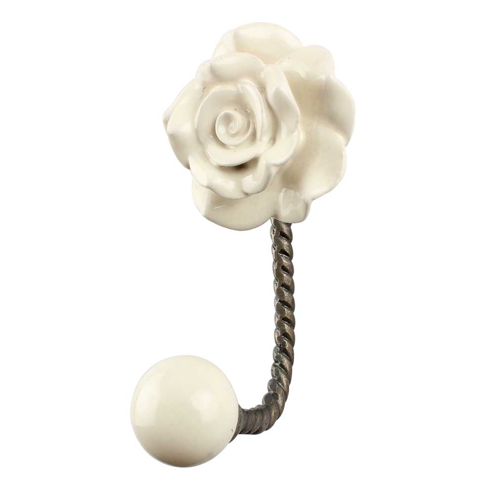Cream Rose Flower Ceramic Wall Hook in Antique Fitting. When Put on Wall or Cabinet It is An Art in Itself. This Hook is Strong Enough to Hold Your Keys, Tea Cups, Hand Towels, Cloths etc.