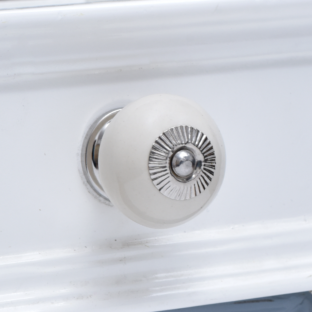 This Cream Silver Fitting Ceramic Drawer Knob does not stand out as a modern or classic piece but rather can easily fit any house style, starting from minimal and ending with the classic one. With a subtle sophistication, it can be used on cabinets, dressers, doors and many other applications.