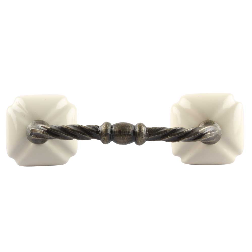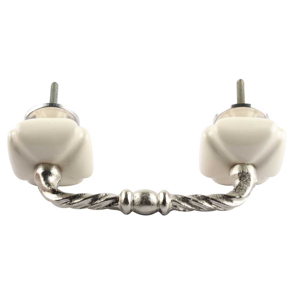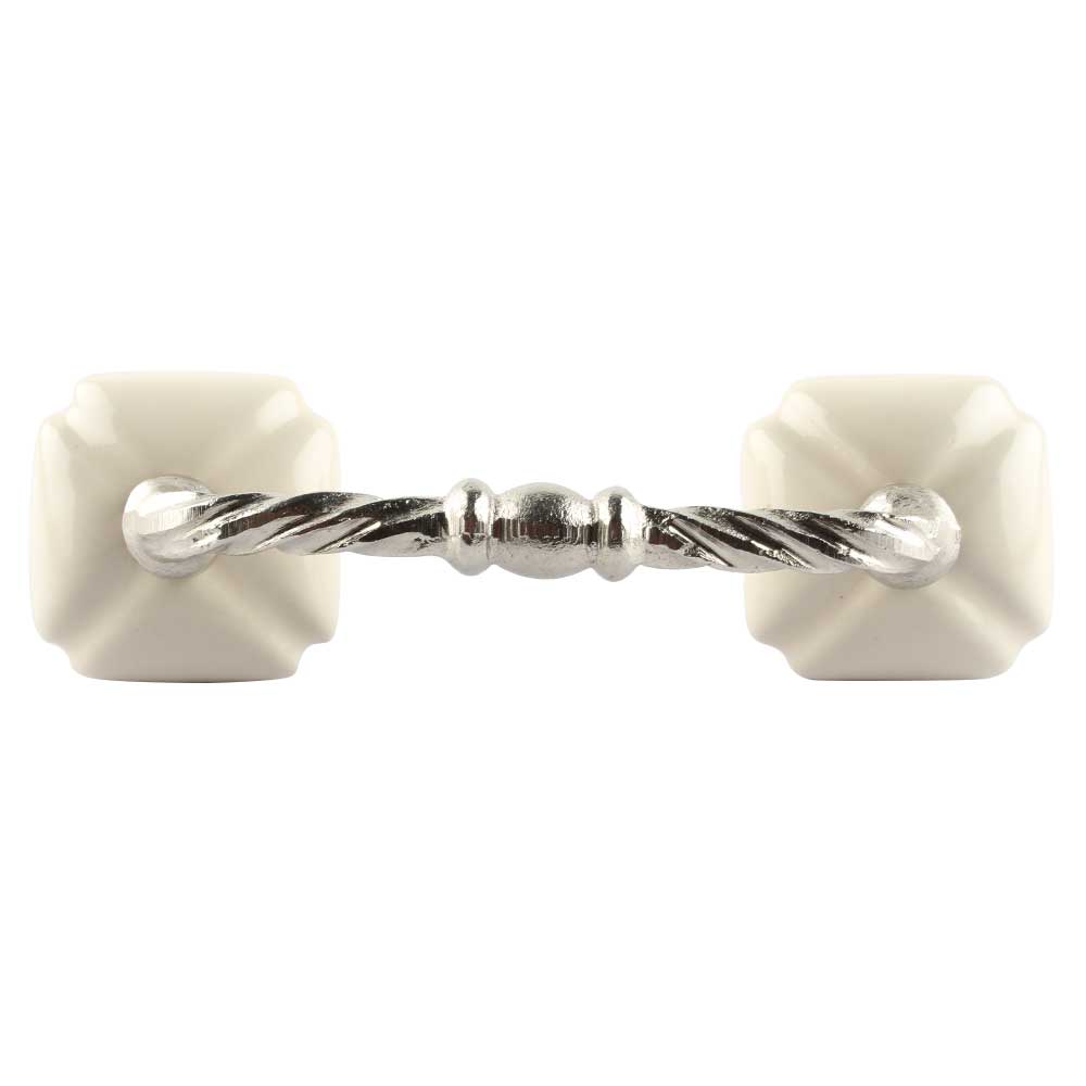 Cream Square Ceramic Cut Bridge Handle. Ideal for Drawer, Dresser, Cabinet, Wardrobe, Cupboard and Almirah etc.