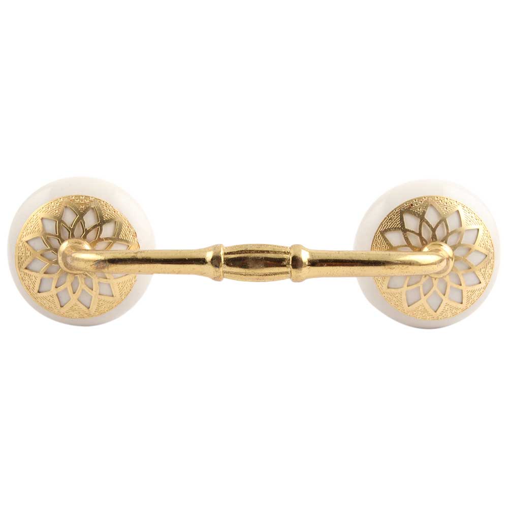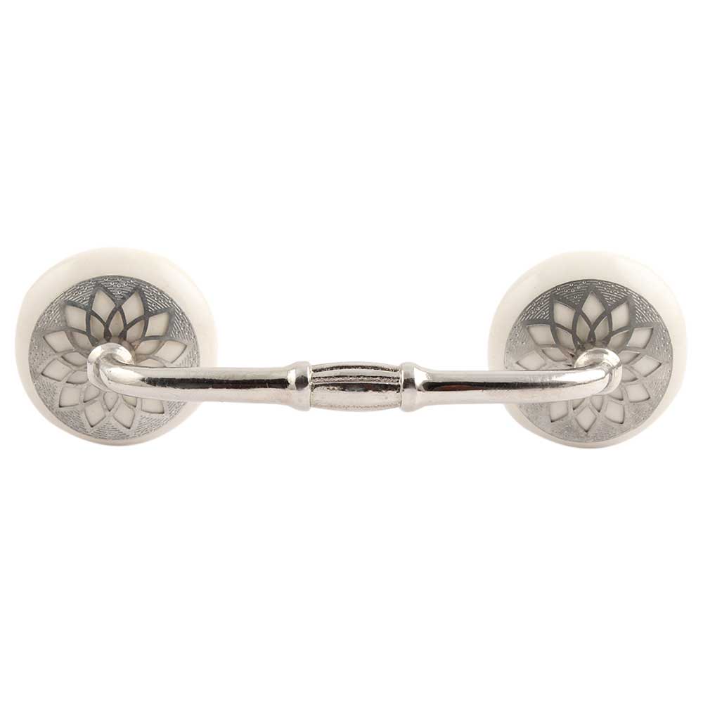 Cream Strewn Flat Ceramic-03 Bridge Handle. Ideal for Drawer, Dresser, Cabinet, Wardrobe, Cupboard and Almirah.