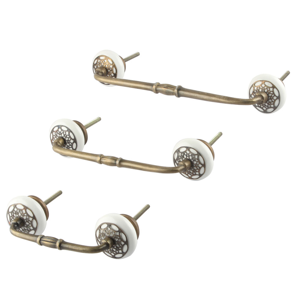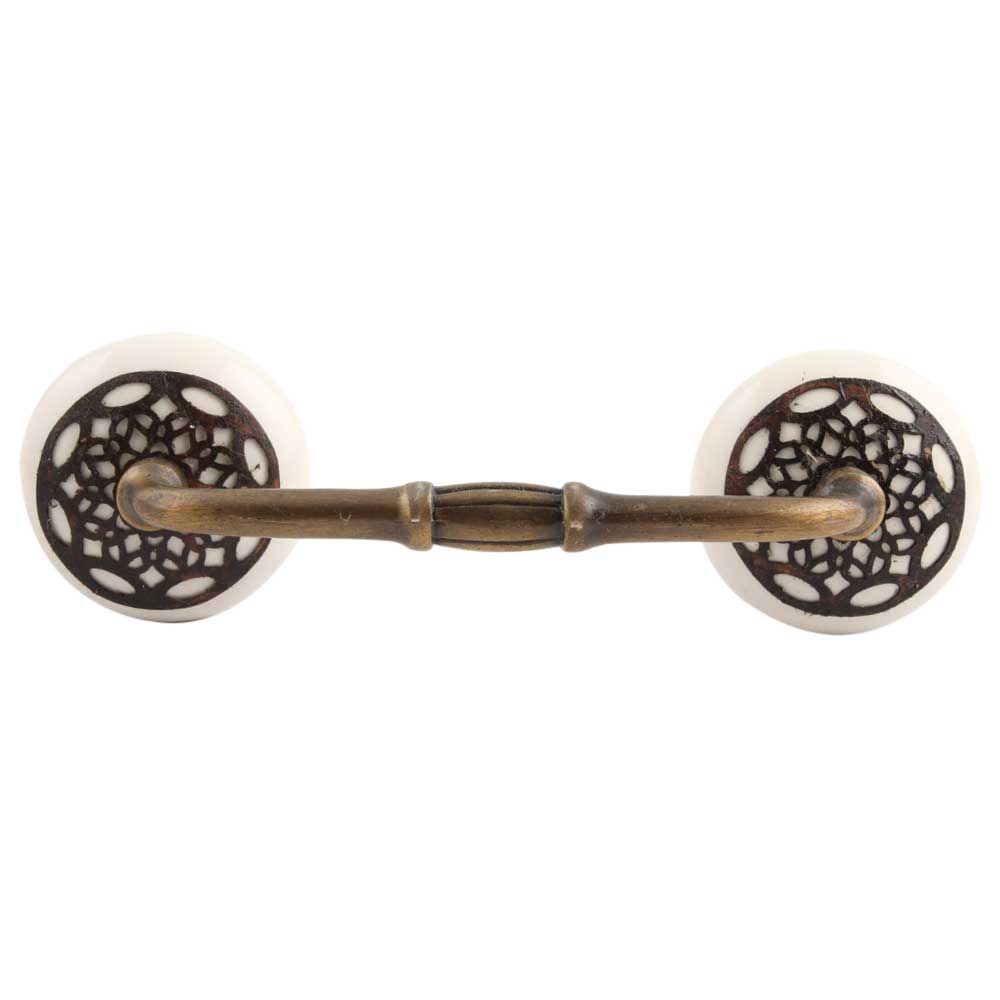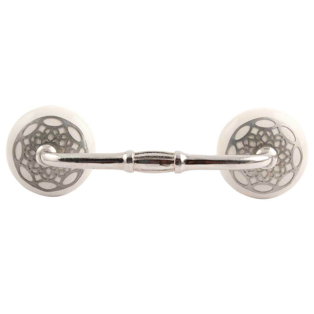 Cream Strewn Flat Ceramic-04 Bridge Handle. Ideal for Drawer, Dresser, Cabinet, Wardrobe, Cupboard and Almirah.